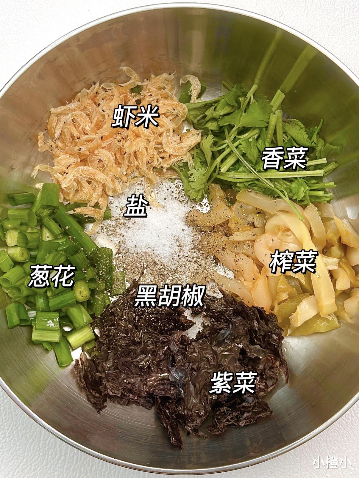 3. 紫菜撕碎片,榨菜切小丁,香菜、葱花分家待命——颜色混搭,拍照发圈直接出片。