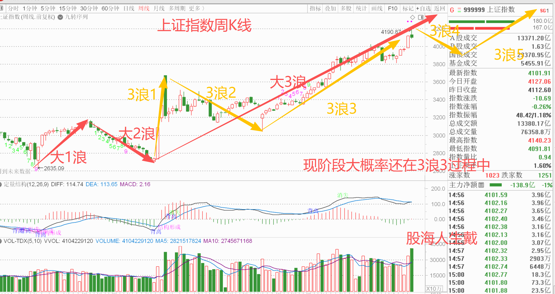 大家请看图,上证指数周K线图及浪型划分。