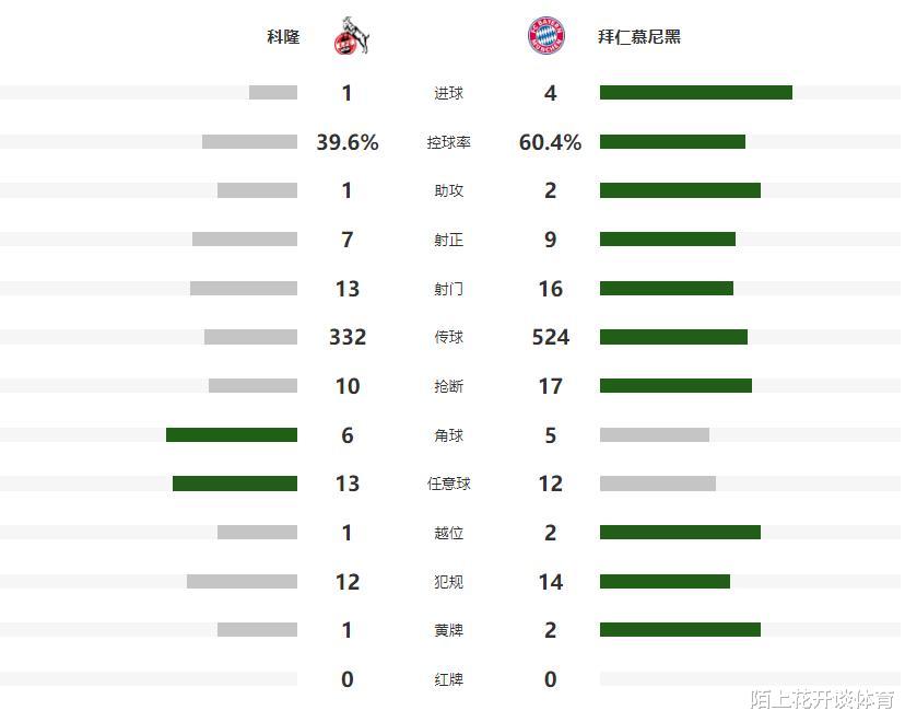 第64分钟拜仁左侧角球开出,凯恩前点头球一蹭,再次攻破了科隆的球门,帮助拜仁将领先的优势扩大到了3-1,彻底终结了胜负的悬念,新赛季凯恩在14场比赛中,已经为南大王创造了25粒球(22粒进球和3次助攻),第72分钟奥利塞锦上添花,将全场比分定格为了4-1。