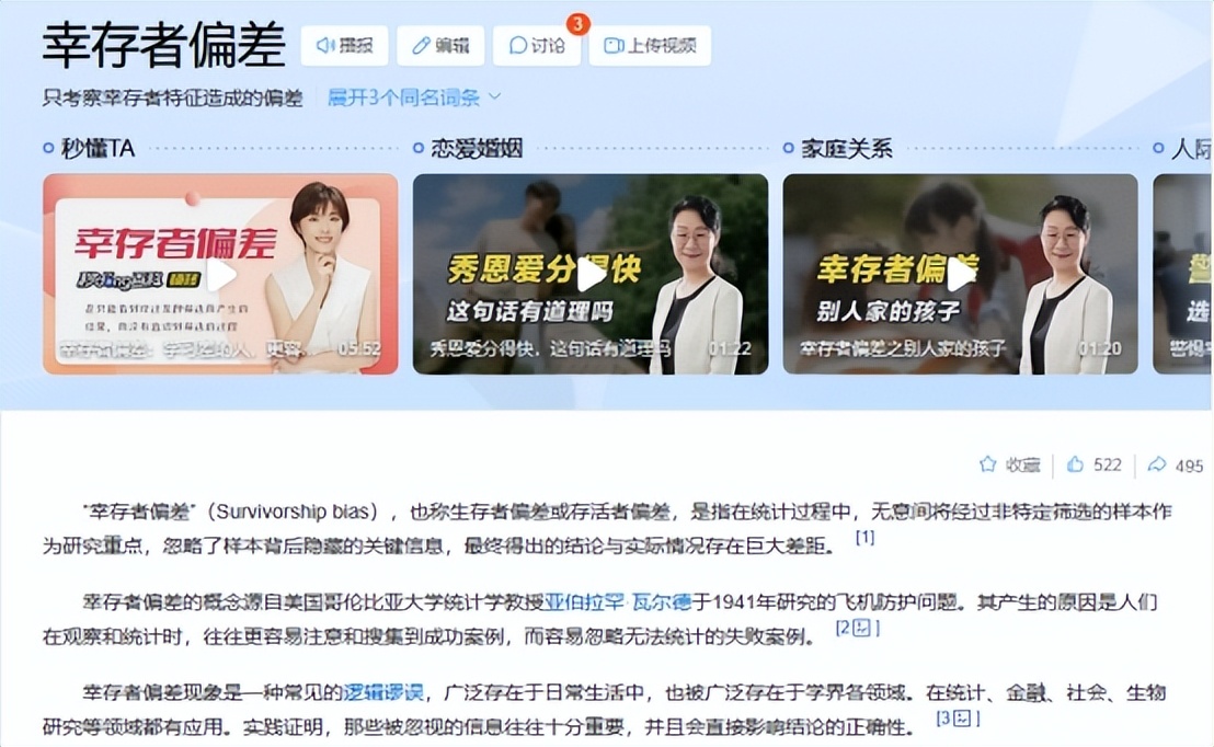 就像如今开设考公考编考研的大热课程的机构,拿着老师和学生们的案例大肆宣传,表示学习时长达到每天15小时以上,采用记忆遗忘曲线法背书就能迅速提高成绩,吃透过往考题就是全面胜利等等,都是在利用人们对幸存者偏差不够充分认知的状况骗钱。