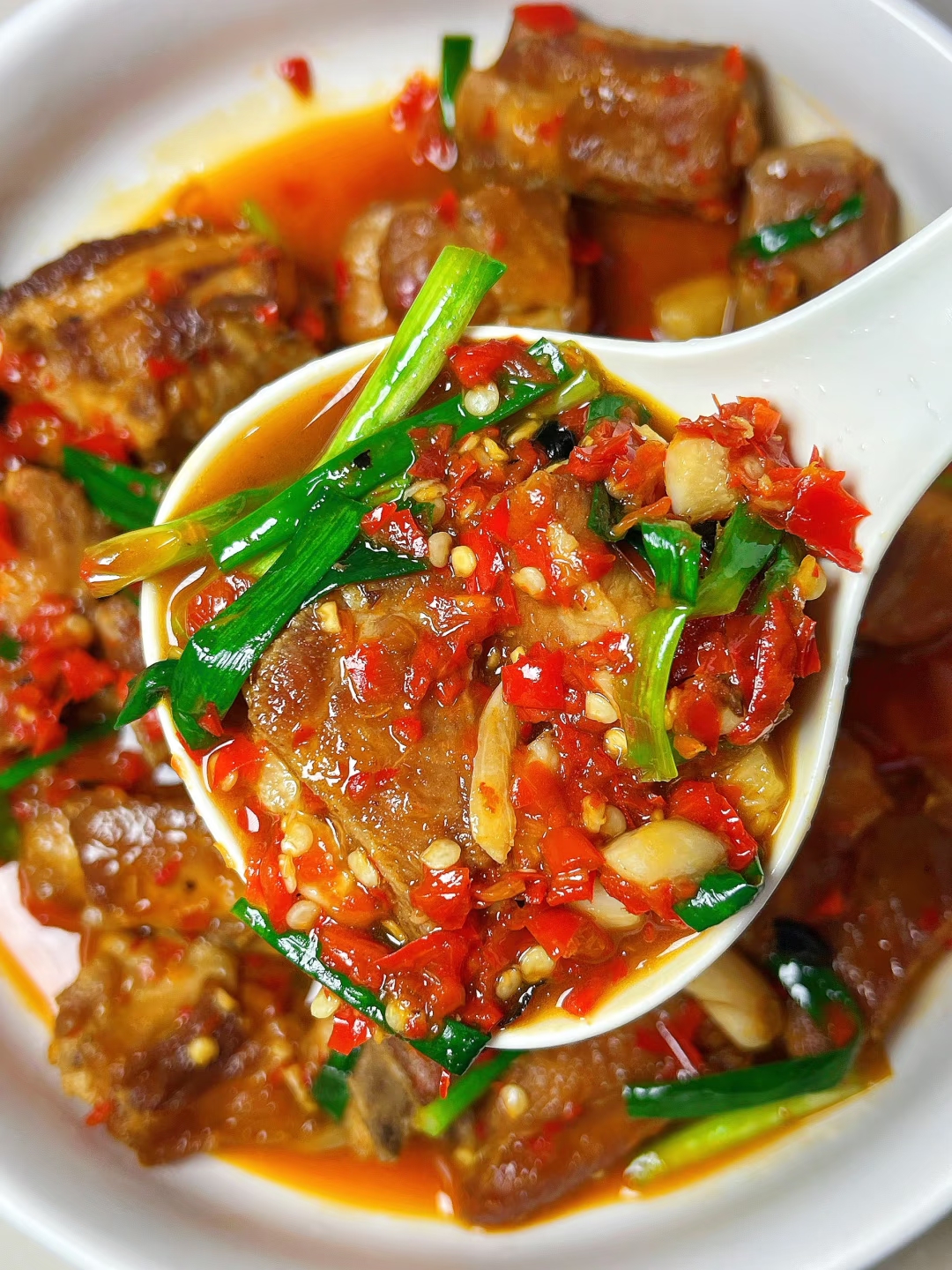 下次当你觉得生活平淡,不妨试试这道穿越时空的剁椒排骨。当红亮的辣椒裹着焦香的排骨在嘴里炸开,当豆豉的醇厚混着蒜香在鼻腔里跳舞,当最后一滴汤汁被米饭抢得干干净净——你会发现,最火辣的快乐,往往藏在最朴实的家常菜里。