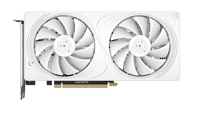 其中,RTX 5050月白OC 以中国传统色“月白”为设计灵感,融入中式美学元素,配备ARGB幻彩信仰灯,支持1600万色调光及多种灯效模式调节。采用全新冰芯2.0散热系统,尺寸为293×118×41mm,在散热效能与视觉呈现上均达到高水准。