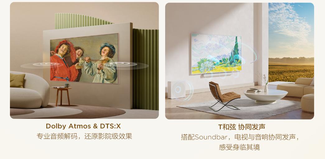 更重要的是,它不只是一台电视——待机时,百幅世界名画轮转展映,AI艺术功能只需3个关键词就能生成专属画作,让客厅瞬间化身私人画廊。这款电视就像融入家居空间的艺术品,不仅外观好看,在非观影时段也能享受独特的情绪价值。