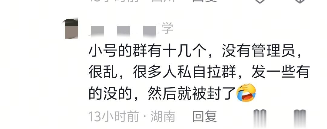 也有网友说,她的小号被封不是要嘉年华被封的,是因为她的小号十几个群没有管理员,太乱,有人在里边乱发负面的东西才被封的。