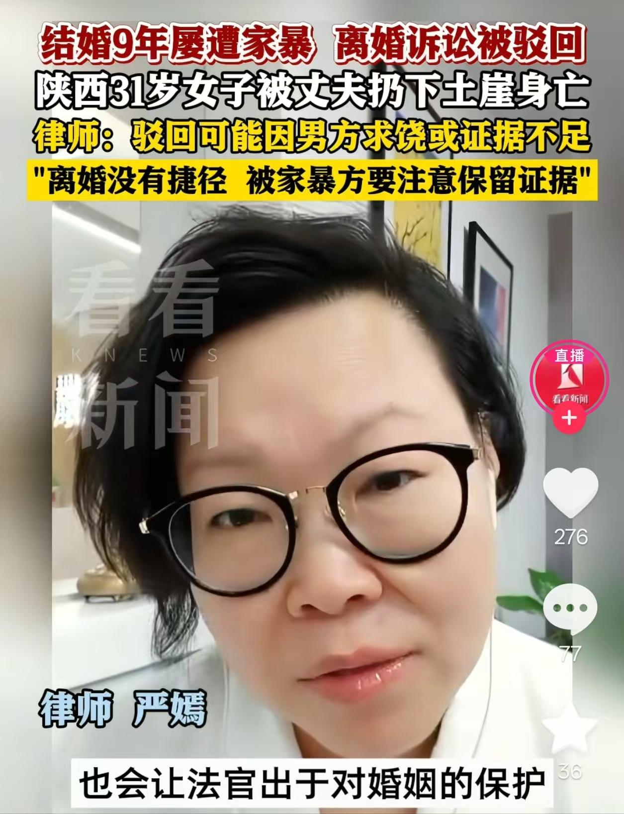 可悲的是,13天前法院刚刚驳回了她的离婚请求。