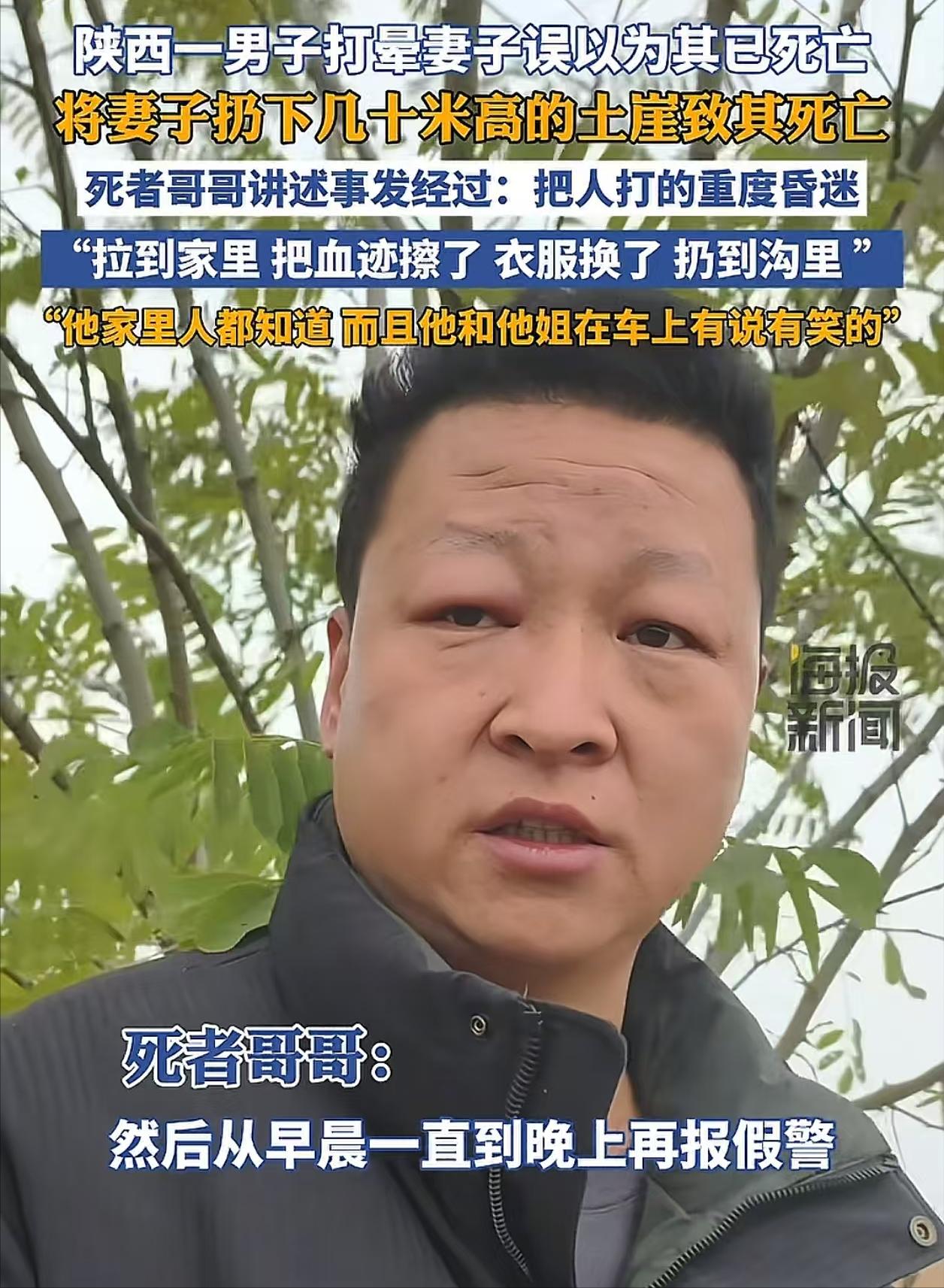 被家人拽走后,他才磨磨蹭蹭报警,还编造了"妻子想不开自己跳崖"的鬼话。