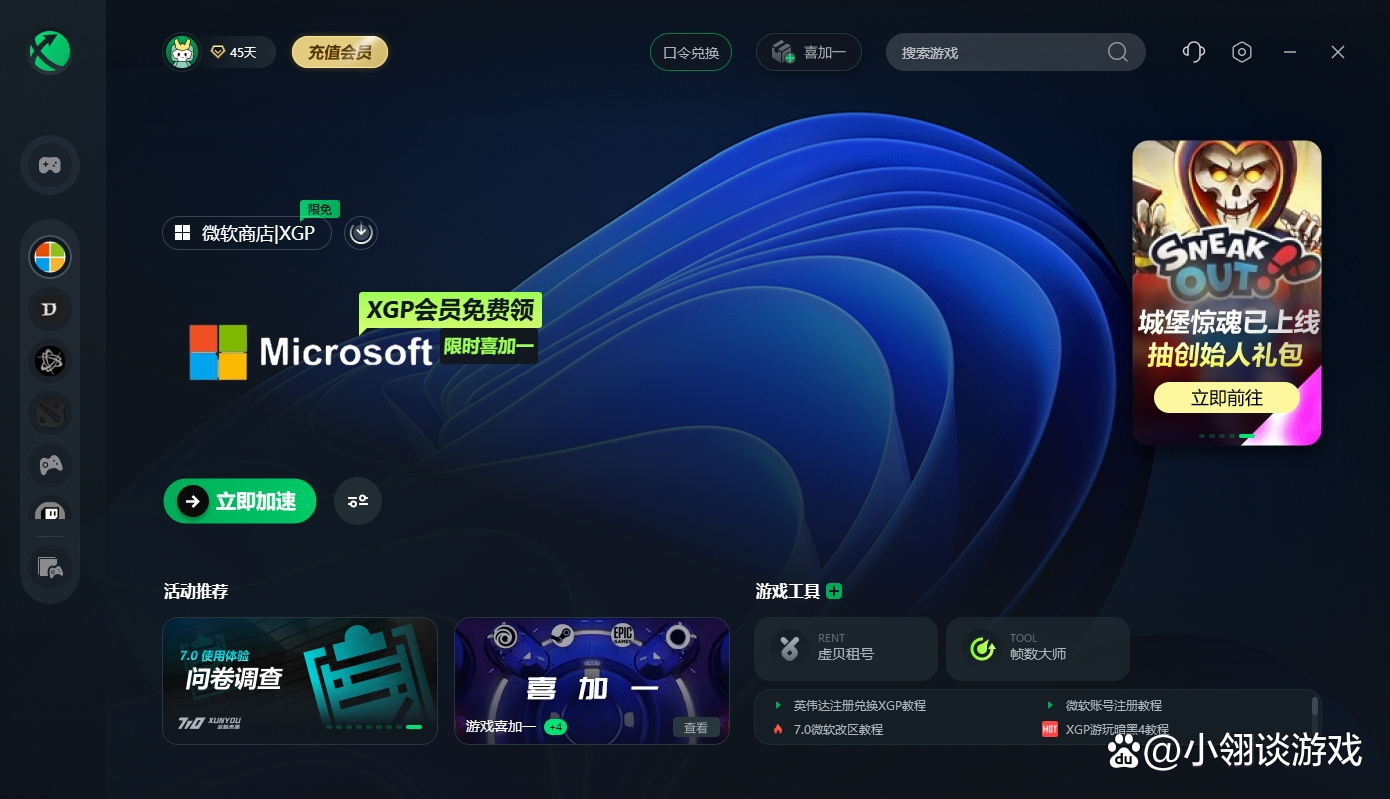 免费领取的方式,大家先下载迅游加速器,之后在口令兑换码处输入:我想白嫖。可以领取到5天的会员免费时长,然后对XPG进行加速。