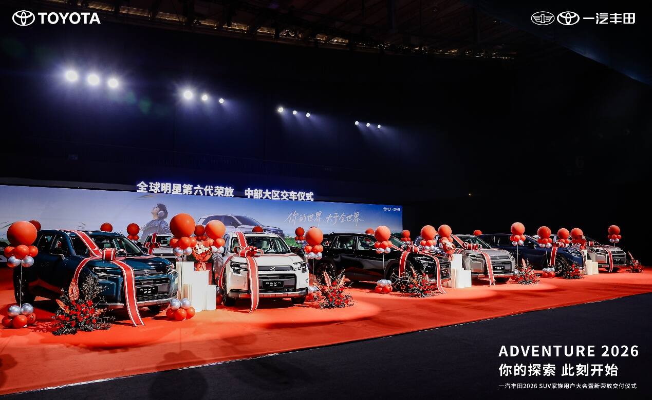 【英俊的车车报道】2026年1月9日,一汽丰田在长沙举办“全新荣放交付仪式暨SUV家族大会”,宣布旗下重磅车型第六代全新荣放正式开启全国交付;同时,为回馈用户厚爱,包括全新荣放、普拉多、皇冠陆放及锐放在内的SUV家族全系车型,推出覆盖广泛、诚意十足的限时购车福利,以卓越产品力结合实在优惠,满足不同用户需求。