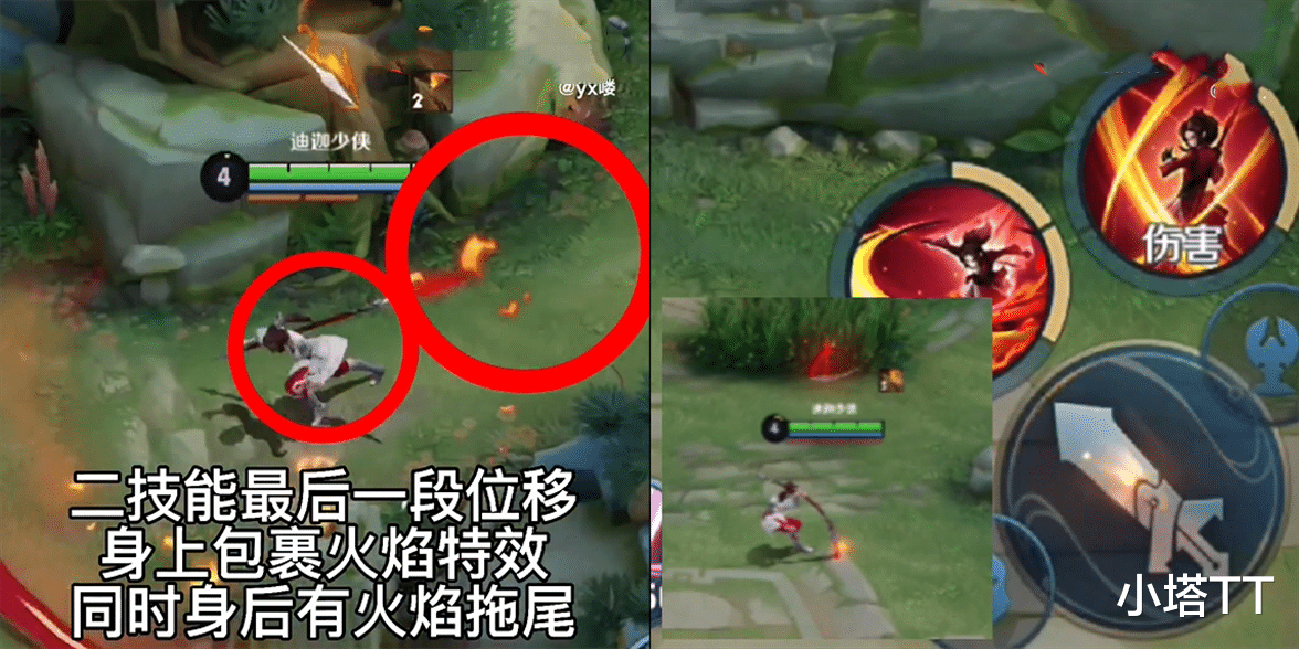 同时局内的特效也有所调整,二技能最后一段位移身上包裹着火焰特效,同时增加了火焰拖尾。而被动层数叠加后,普攻按钮也增加了火焰特效,目前唯一一个有这么好待遇的英雄,不愧是天美亲女儿。当然这也和新CG的情节有关系,大家可以去看一下哦!