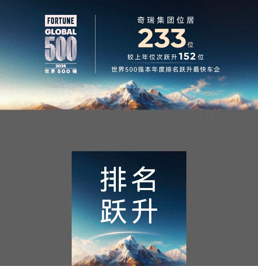 7 月 29 日,2025 年《财富》世界 500 强榜单全球同步揭晓,奇瑞控股集团有限公司以第 233 位的成绩强势登榜,较 2024 年跃升 152 个位次,成为年度全球排名跃升最快的车企。这一跨越不仅刷新了中国车企在全球舞台的进阶速度,更以 “加速度” 诠释了中国汽车品牌从制造到智造的蜕变密码。