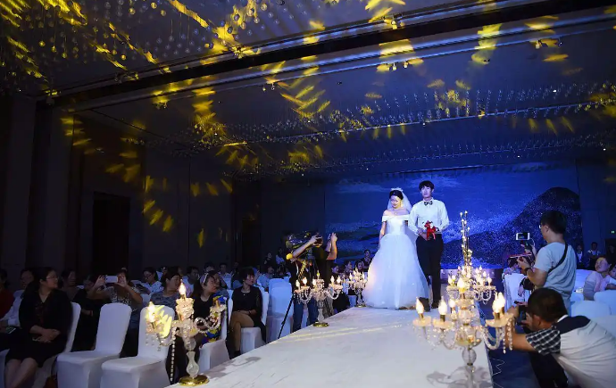 婚礼现场,五星级酒店的水晶吊灯洒下璀璨光芒,将整个大厅映照得金碧辉煌。