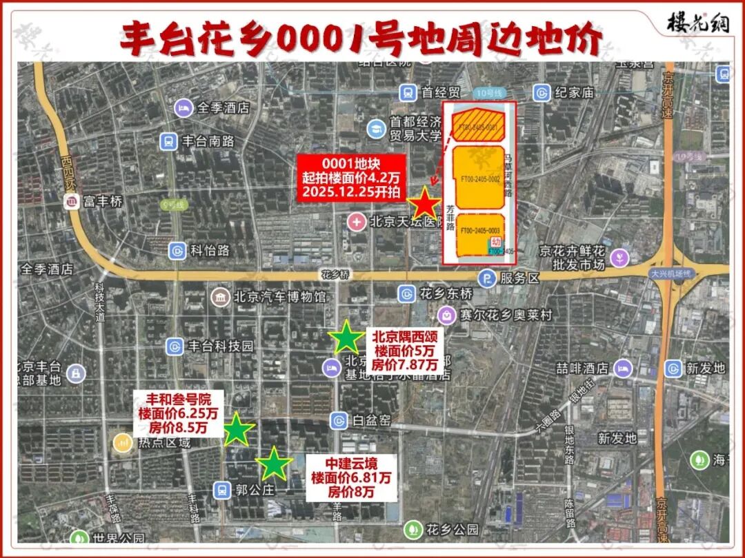 花乡0001地块,素质不错,在西南三四环之间,但楼面价仅为4.2万元/平米。