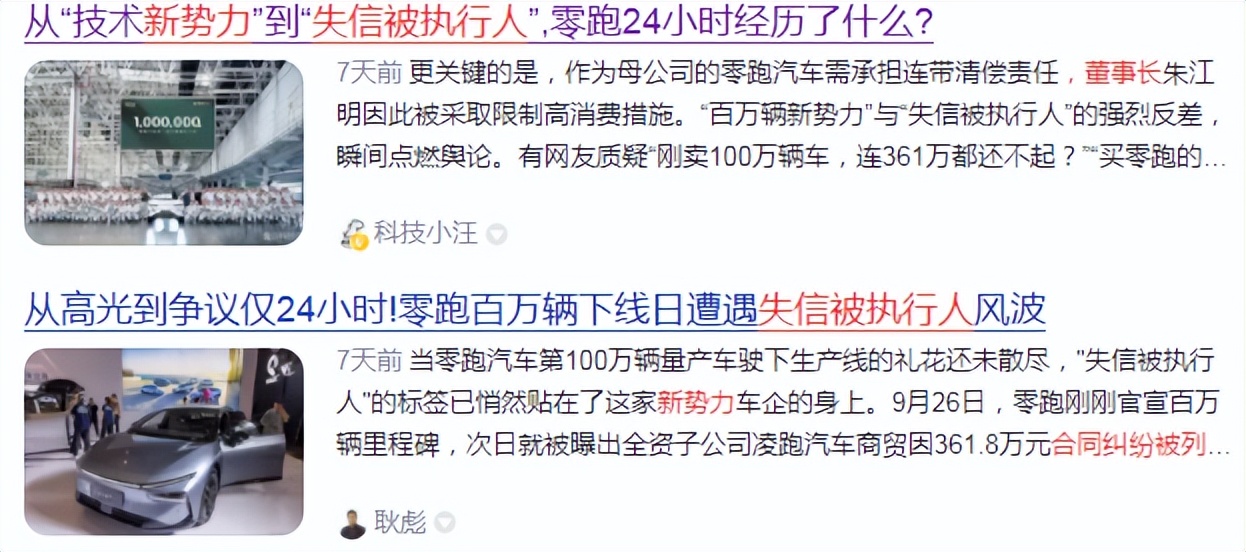 一个是一家新势力品牌因合同纠纷被列为失信被执行人,董事长收到限制消费令。
