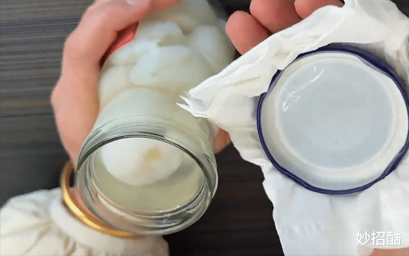 然后找一张纸巾垫在瓶盖上,防止烫到手,也可以轻松拧开瓶盖。