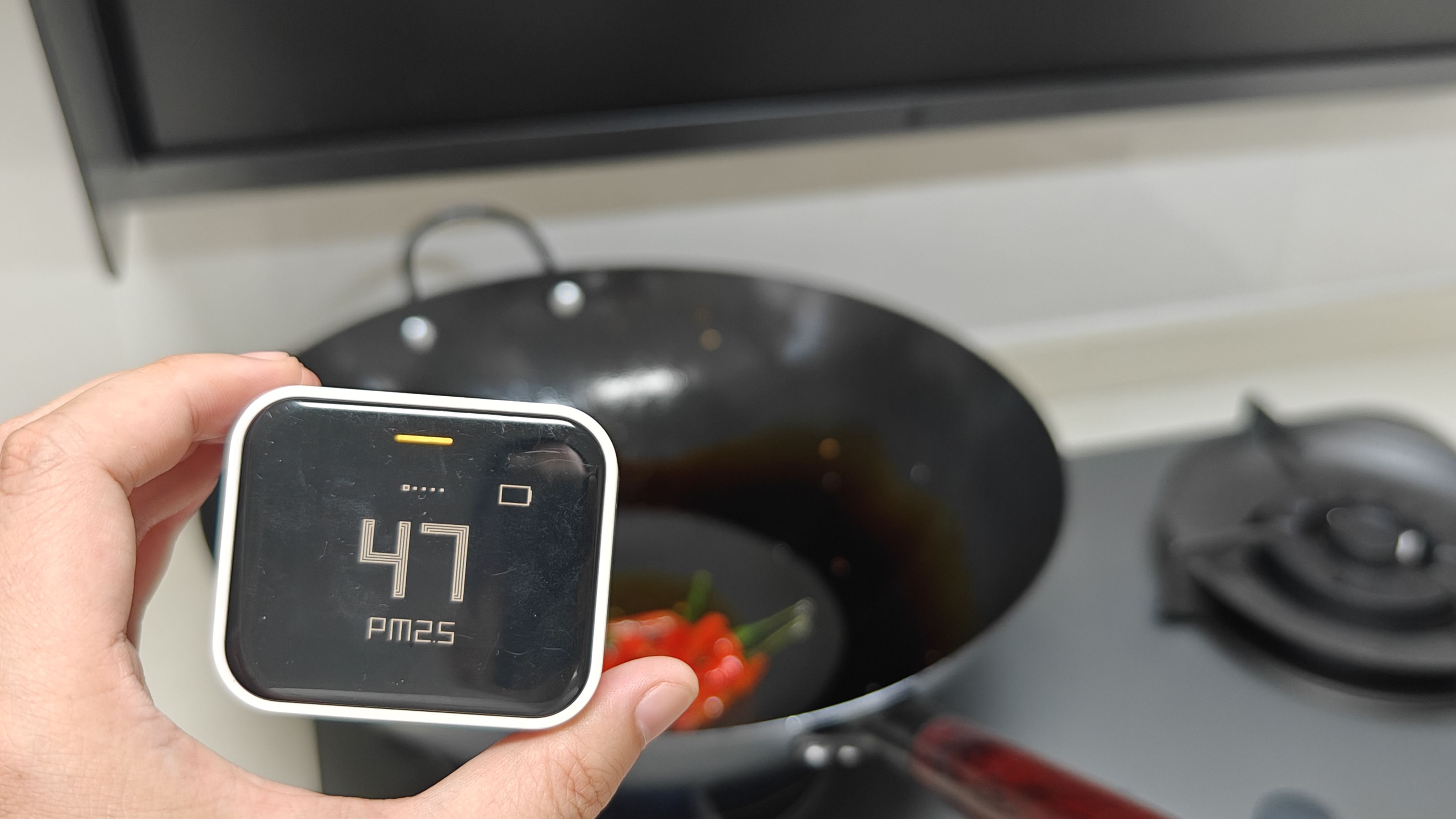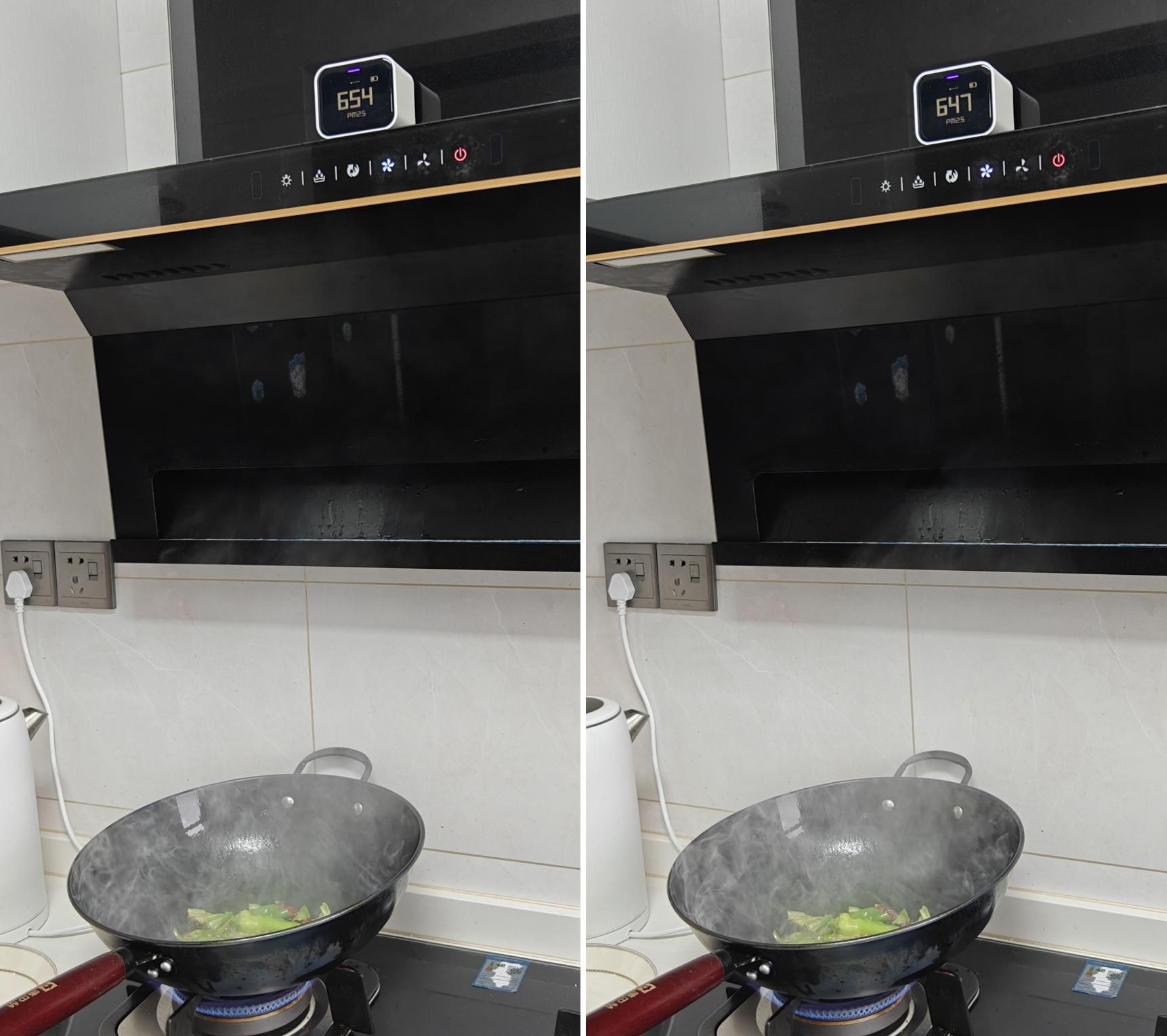 米家净烟机P1实测在爆炒过程中,PM2.5指数牢牢地控制在国家标准50以内的安全范围,完全不呛鼻,甚至不仔细闻很难感受到辣椒的味道。对比家里的旧油烟机,同样是面对爆炒的油烟污染,几乎只有家中老款油烟机的零头,简直不要太强大。