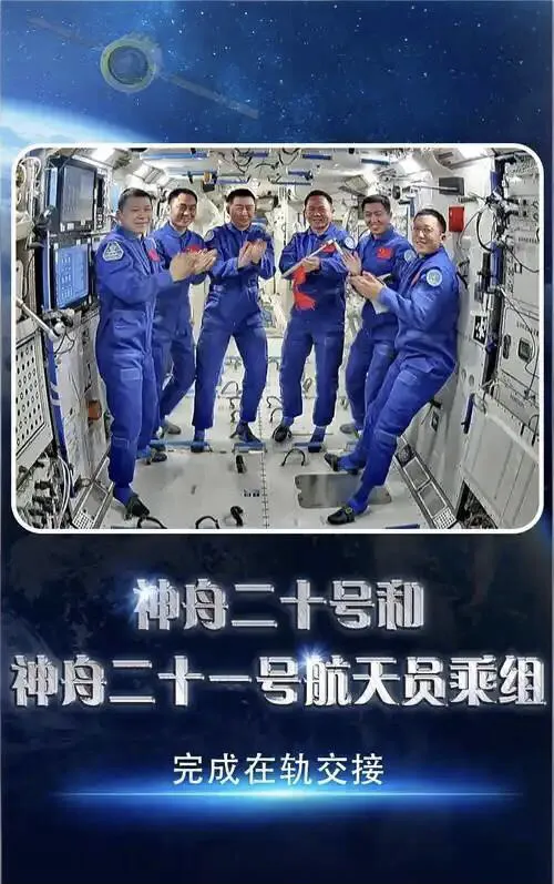 就在前一天,神舟二十号乘组刚与神舟二十一号乘组完成中国空间站第7次太空会师及钥匙交接。