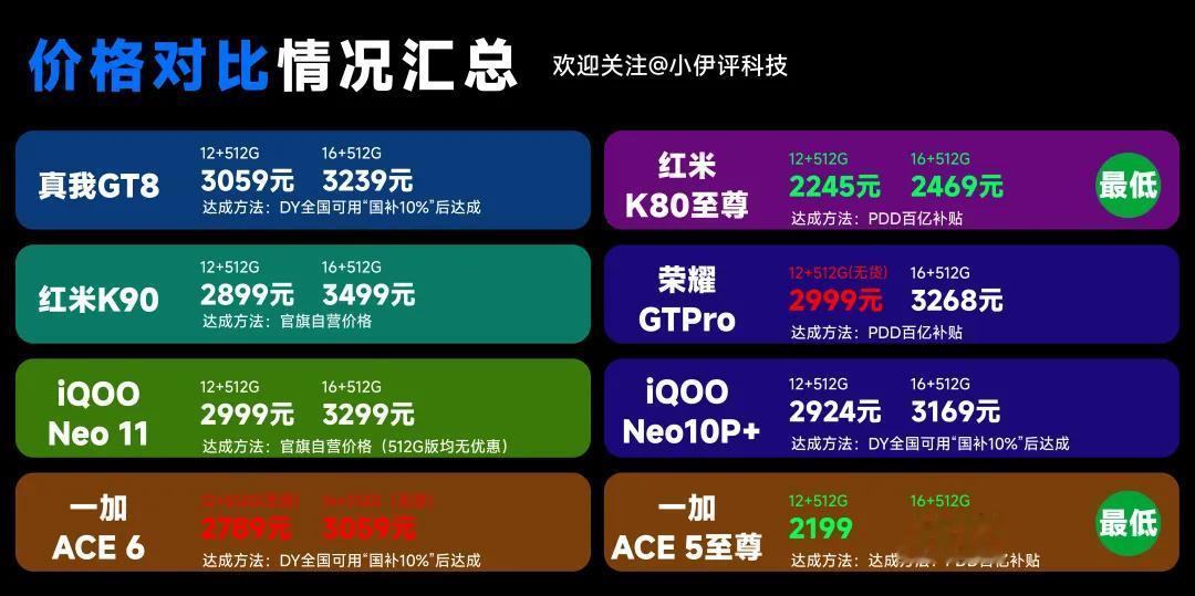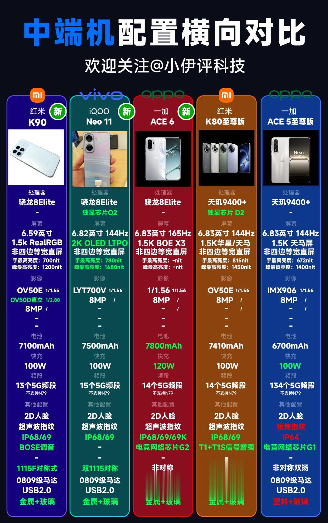那么剩下的就是红米K90、iQOO Neo 11、一加ACE 6、红米K80至尊版以及一加ACE 5至尊版这五款手机了。