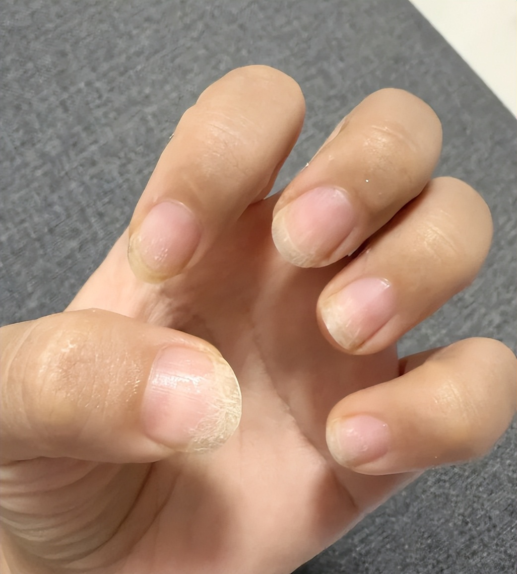 女生做完美甲之后,时间长了之后,指甲长长了。