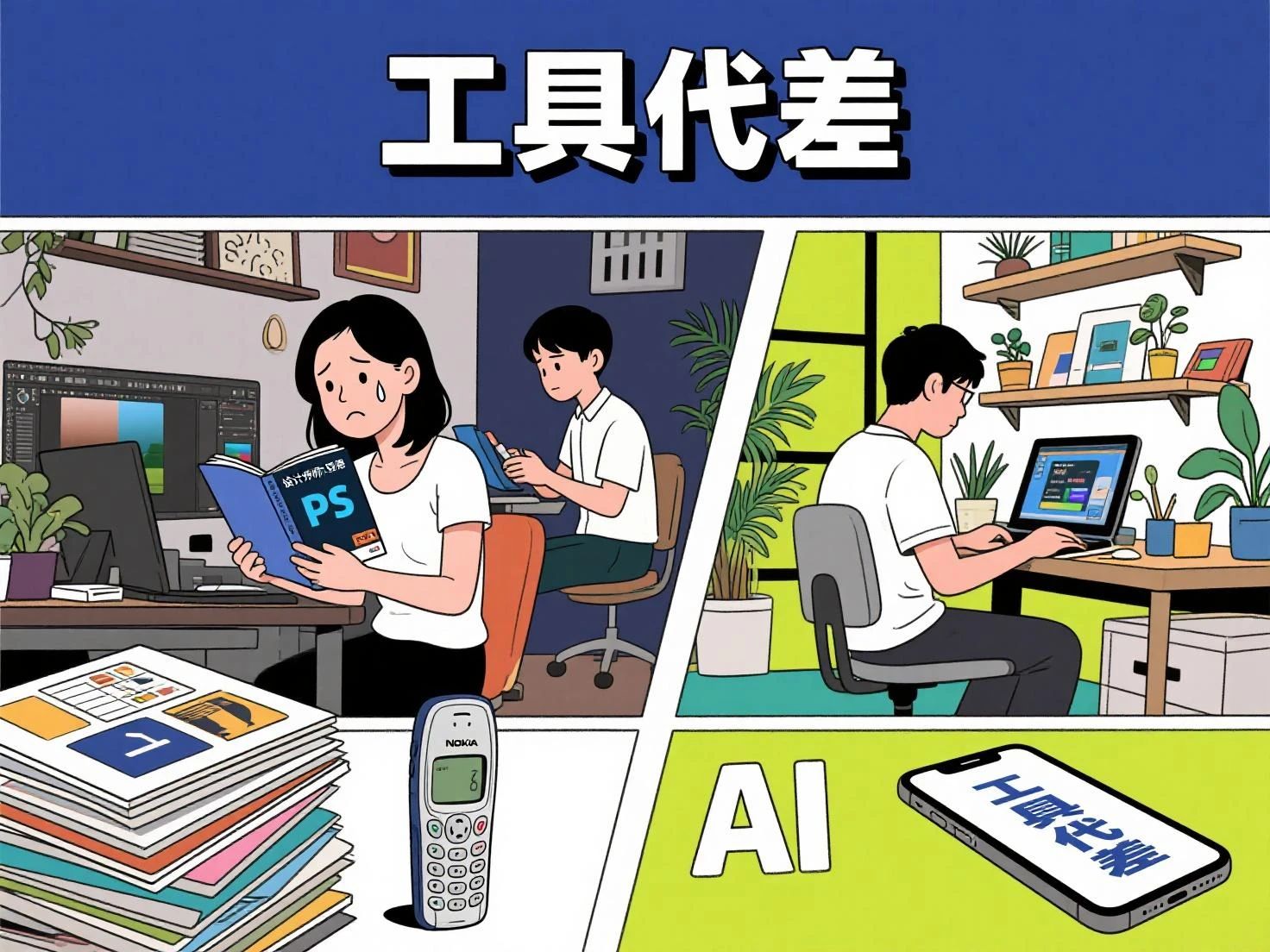 设计师周婷的经历很有代表性:她在使用PS绘图的时候,刚毕业的实习生已经能够借助AI工具批量做出符合品牌风格的素材;等到她好不容易学会用Midjourney了,新的系统又可以根据销售数据自动调整视觉风格,这就跟拿诺基亚去和智能手机比较一样。