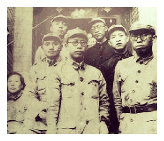 红军时期的陆定一(前排左一,前排左二为罗荣桓;第二排左一为李伯昭,左二为邓小平;第三排左一为杨尚昆)