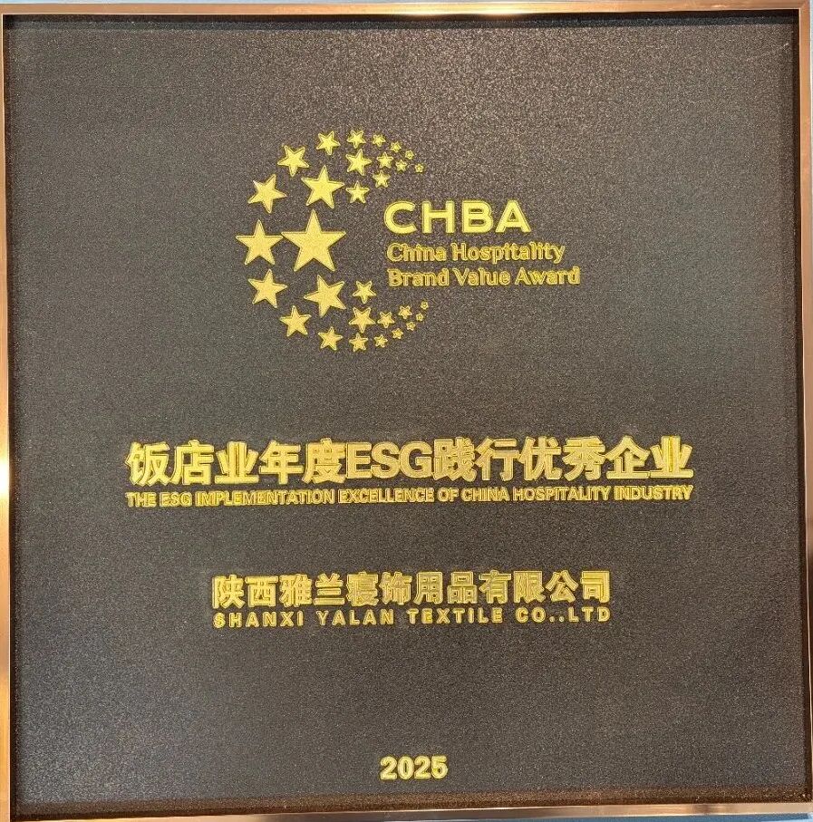 会上,陕西雅兰寝饰用品有限公司荣获2025饭店业年度ESG践行优秀企业奖项,这一荣誉的获得是对陕西雅兰绿色生产、社会责任践行与规范治理的认可,更充分印证了公司长期坚守ESG发展理念的实践价值与行业意义。
