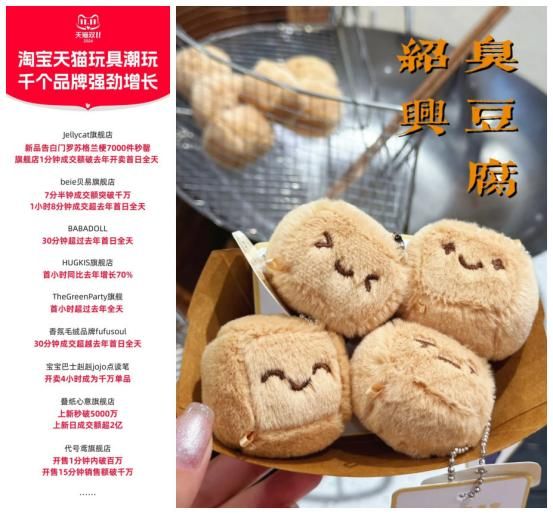 似乎,“毛绒绒”正在成为今年最受欢迎玩具品类。10月21日晚8点,天猫双11现货开卖,开卖首日,2小时成交额突破去年开卖首日全天,乐高、叠纸心意、Jellycat、宝宝巴士、代号鸢等8个品牌成交破千万。