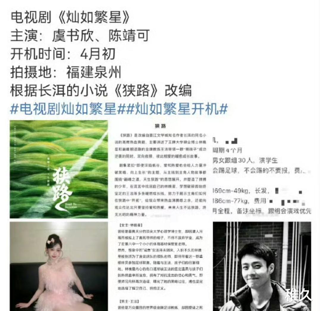 虞书欣、陈靖可主演的电视剧《灿如繁星》即将于4月初在福建泉州开机,这一消息无疑给广大粉丝和观众带来了一份期待已久的惊喜。作为一部改编自晋江文学城长洱小说的作品,《灿如繁星》自筹备之初就备受瞩目,而两位主演虞书欣和陈靖可的加盟,更是让这部剧集的热度不断攀升。