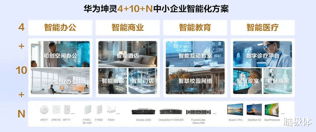 而在这一年中,大力发展面向中小企业的分销市场生态,是“华为+伙伴”合作体系的关键发力点。华为将过去的产品分销模式升级为一站式场景化方案的分销模式,围绕场景打造方案,基于场景定义产品,推出华为坤灵“4+10+N”中小企业智能化方案。