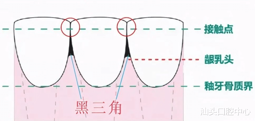 健康的牙龈,颜色是粉红色的。它紧紧包裹着牙齿根部,牙缝里的牙龈会形成一个“三角区”,医学上叫牙龈乳头。正是这个小三角,能挡住食物残渣和细菌,避免它们钻进牙齿缝隙深处搞破坏。一旦这部分牙龈“消失”,出现“黑三角”,不仅牙缝会变大、影响美观,还可能引发一系列口腔问题。