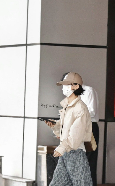 口罩遮面的她,留着微卷的短发,一举一动间,流露出几分高贵典雅的气质,乍一看,差点让人认不出这就是颖宝。