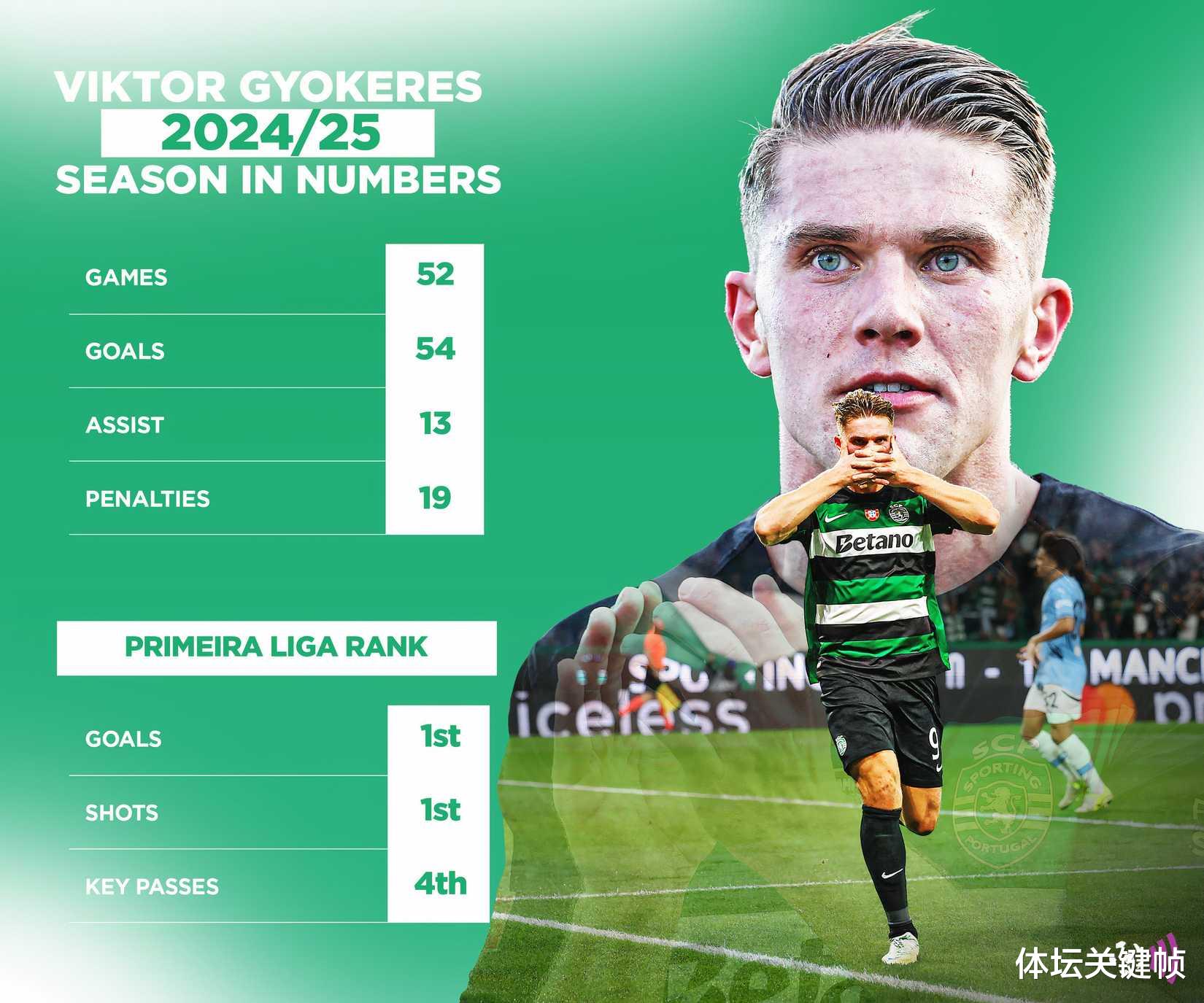 作为阿森纳今夏的高价引援,居克雷斯在过去两个赛季状态火爆。2024/25 赛季,他为葡萄牙体育在 52 场比赛中打入 54 球,但重返英格兰赛场后,他未能延续这样的高光表现。