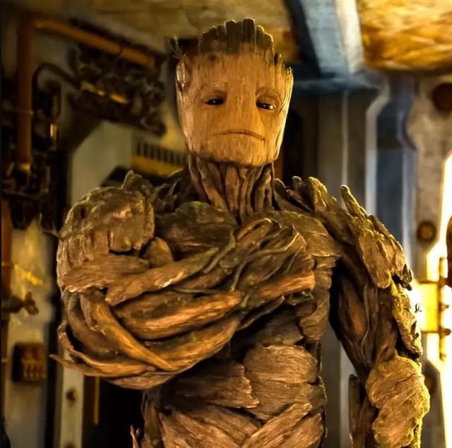 并且在《银河护卫队:假日特辑》和《银河护卫队3》中,我们已经见识到了格鲁特明显比此前壮了一圈,如果转换成人类,就是一个肌肉硬汉。