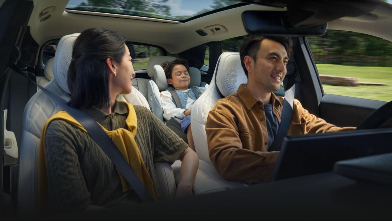 如果说智能是领克08 EM-P的硬核实力,那“全家适配”就是它的温柔一刀。哈曼卡顿23扬音响打造移动音乐厅,Nappa真皮四座全员共享通风加热按摩,连7L冷暖冰箱+小桌板组成的“家庭舒享包”,都成了宝妈们的“带娃神器”——零食饮料随手取用,iPad支起秒变动画影院。
