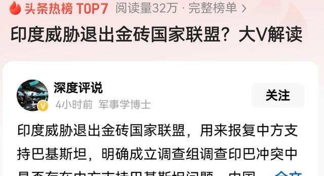 “一箭双雕”没射中,反而引发“群鹰环伺”。印度这步棋,走得太硬也太急
