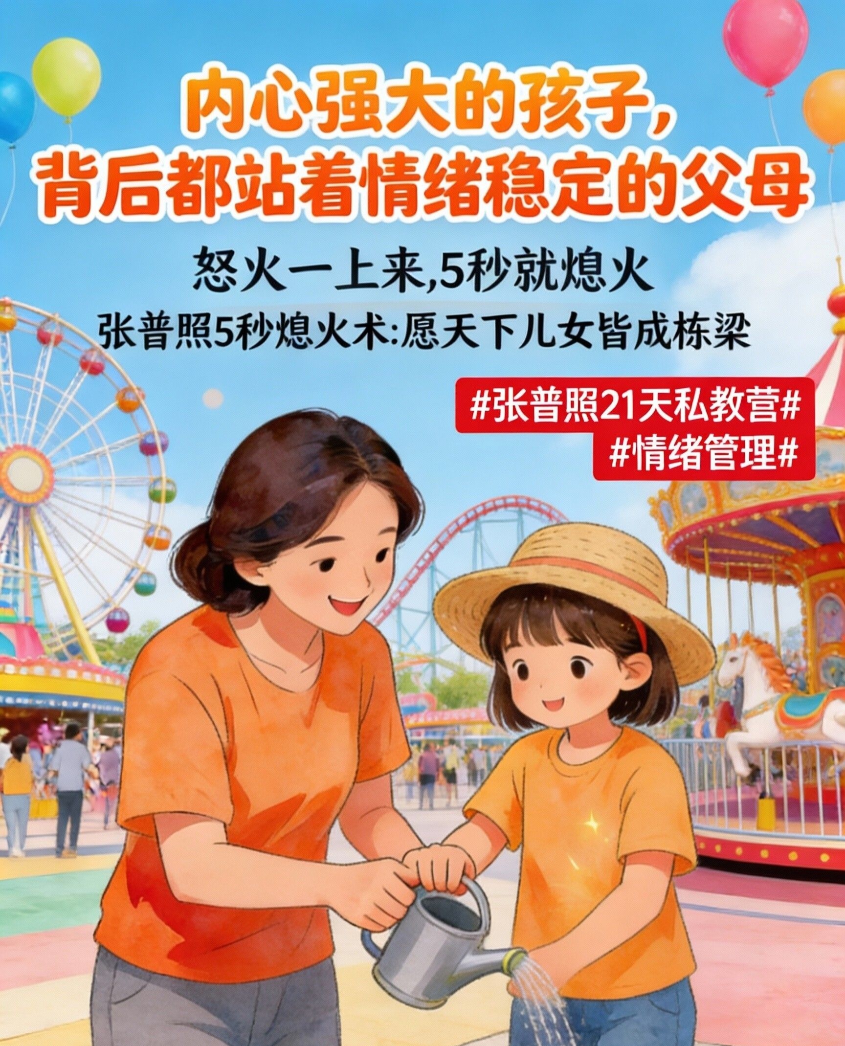 张普照5秒熄火术,就是让你获得这种 “定海神针”之力 的核心心法。在你被孩子的行为触发,感到失望、焦虑,即将用语言或态度去削弱他本就脆弱的自信的 那个5秒,给你一次从“压力的传导者”到“力量的守护者”的 瞬间切换。