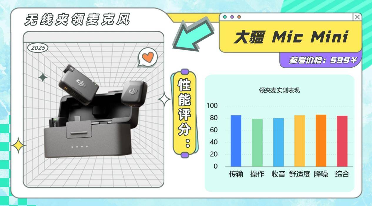 新兴消费级品牌推出的平价无线领夹麦,表现稳定,主打基础收音功能和佩戴舒适度,适合刚接触创作、只需要基础收音功能的纯新手,预算有限且看重佩戴体验的用户。