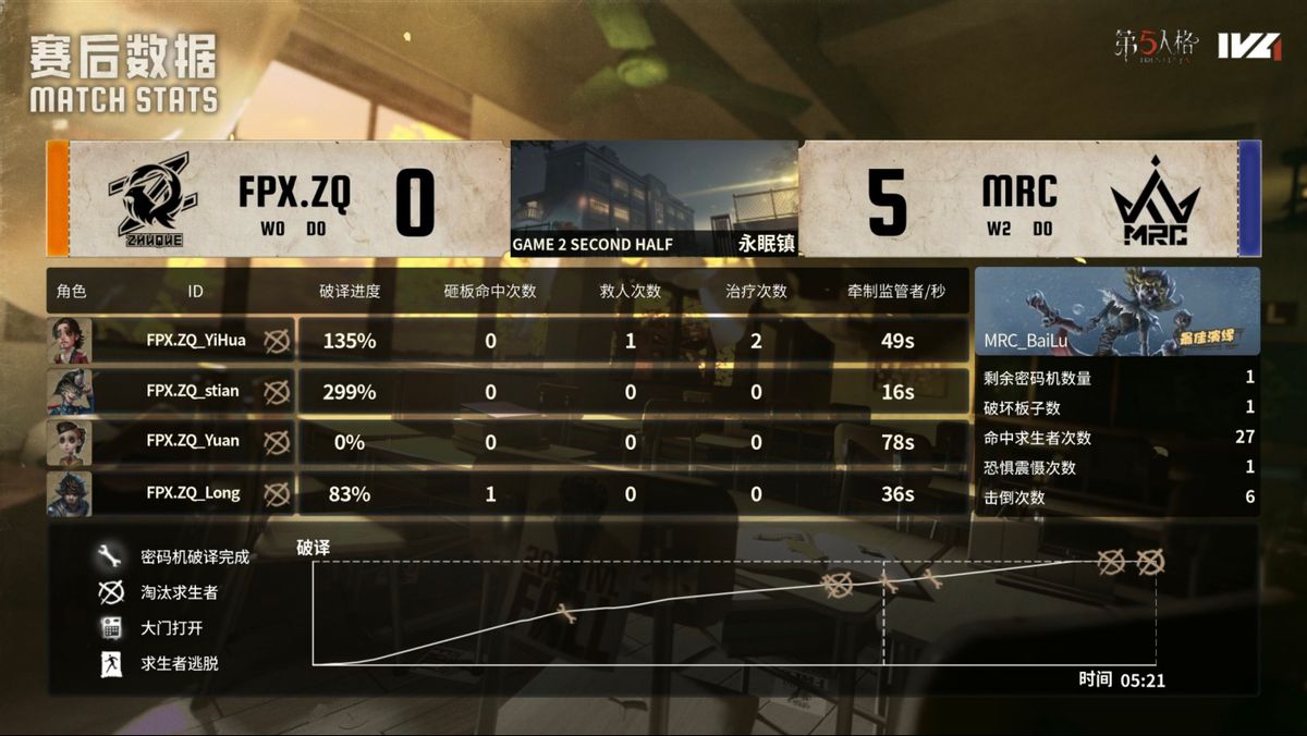 第二局比赛上半轮:MRC求生者对阵FPX.ZQ监管者