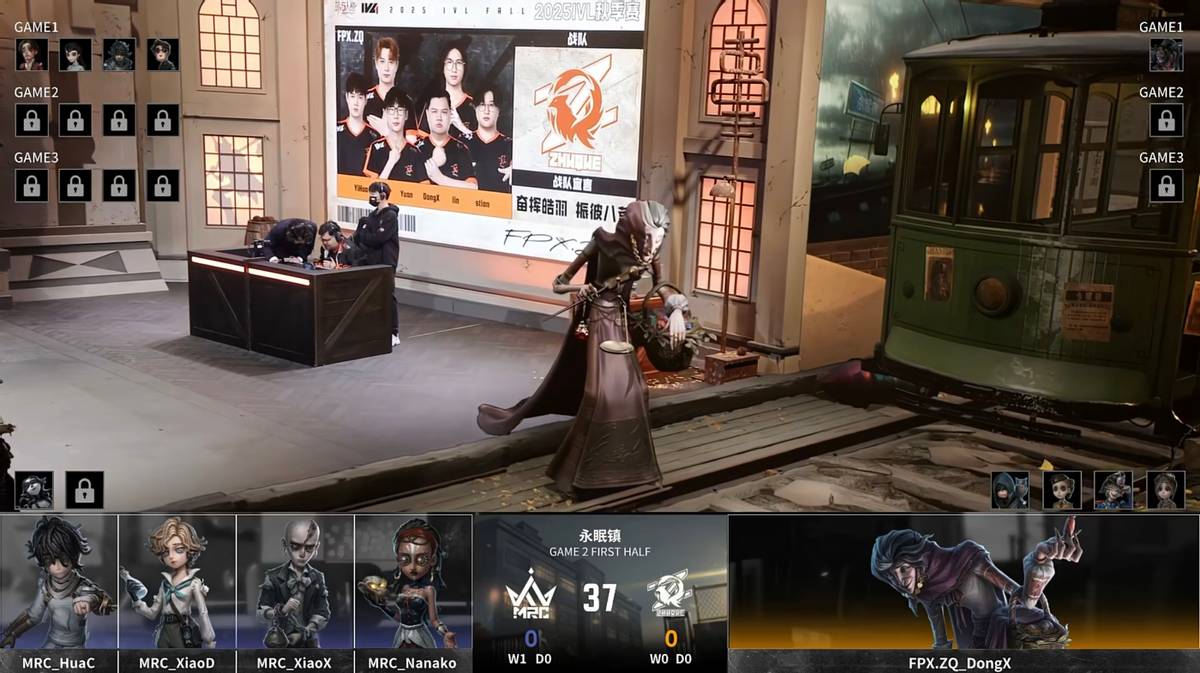 2025年11月27日,第五人格IVL秋季赛常规赛第九周第一日的比赛开始。在当天的比赛中,MRC以2胜0平0负的战绩(12:6)击败了FPX.ZQ,以下是本场比赛战报。