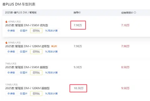 当然,对于车主来说,买这辆车才是最需要考虑的问题,车主怎么选才是最好的?我的意见就是看纯电,说到底,大部分车主用车,都是会优先考虑纯电的问题,纯电能多一点就多一点,我最推荐的,就两款,一款是9.58万的超越型,而另外一款是7.98万的进取型,就一个原因,这两个版本的纯电续航比较多。