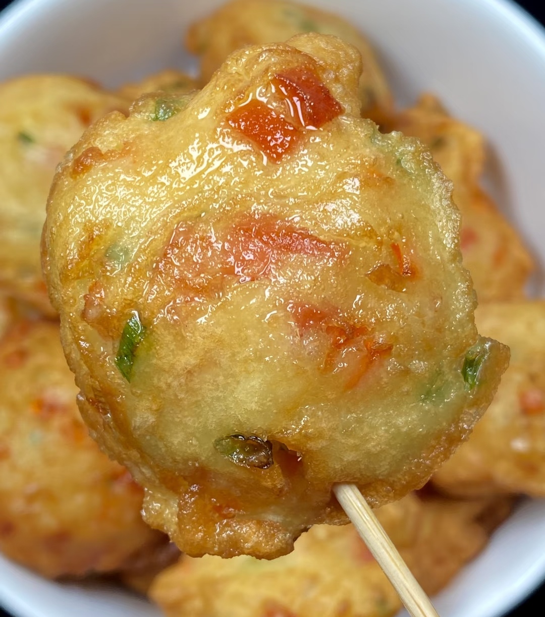 金属勺在油里烫5秒,防粘。舀半勺面糊,离锅面3厘米高,轻倒—快收!面糊遇热自动离勺,像跳水运动员“空翻”入锅,3秒鼓成球。