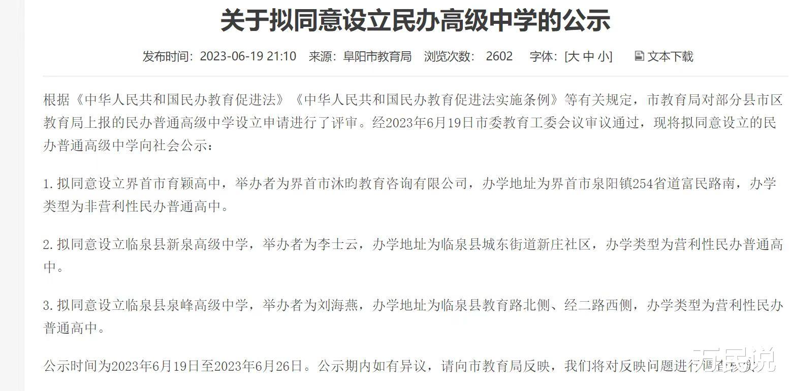临泉县新泉高级中学成立于2023年,是一所营利性民办普通高中。其招生轨迹,或已折射出某种现实: