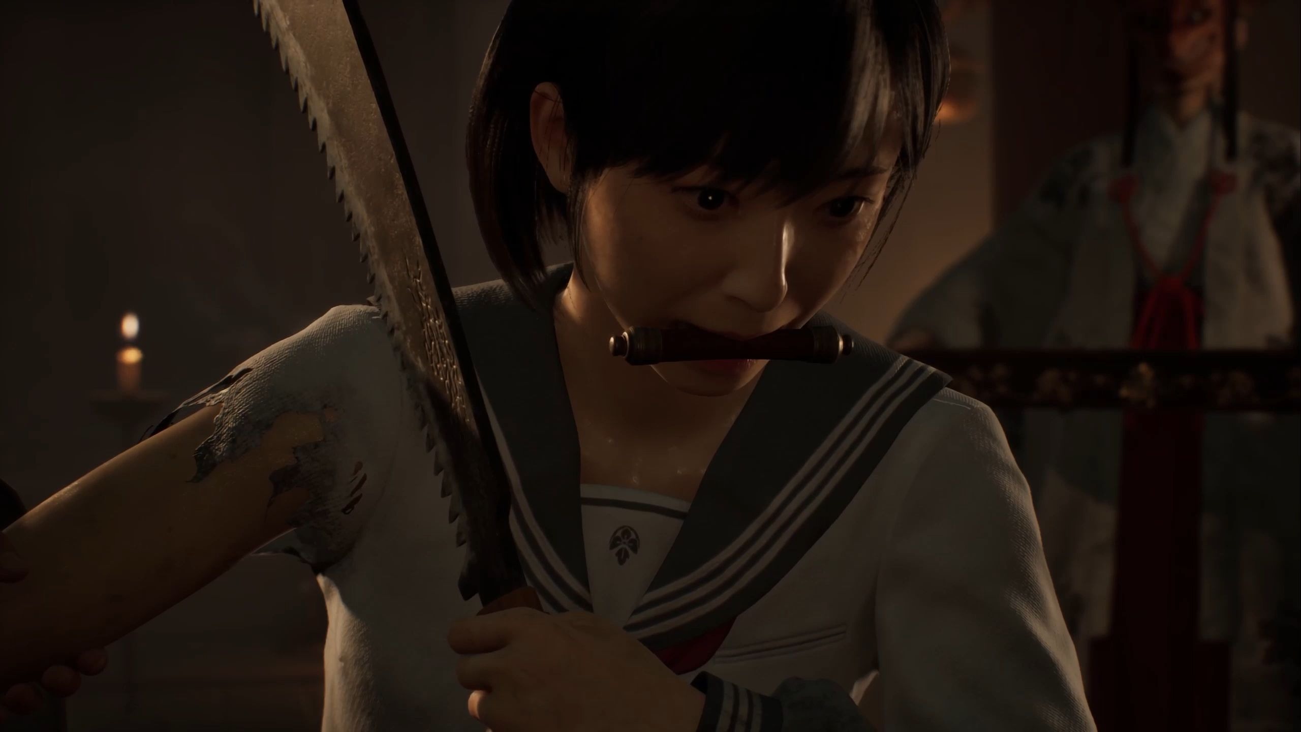 游戏中,雏子要当新娘,就必须过一道道关卡:和儿时玩伴绝交、和父母断绝关系,甚至把渴望自由的、孩子气的自己都杀死。一个女人结婚、嫁人,在某种程度上,相当于过去的自己已经“死亡”。而在与男方成亲的结婚仪式上,游戏把这种恐惧具象化,也成为众多玩家游玩后的心理阴影。在成亲仪式中,雏子需要听过三道难关:雏子必须亲自斩断自己的手,代表她将成为夫家的一份力量;雏子的后背必须要用滚烫的烙铁烫出男方家族的徽章,象征她从此不再是一个完整意义的人,而成为家族的牛马;雏子必须割掉自己的脸,戴上象征男方家族的狼面具,代表她将从此“盲目”,再也不用自己的眼睛去看、去思考。