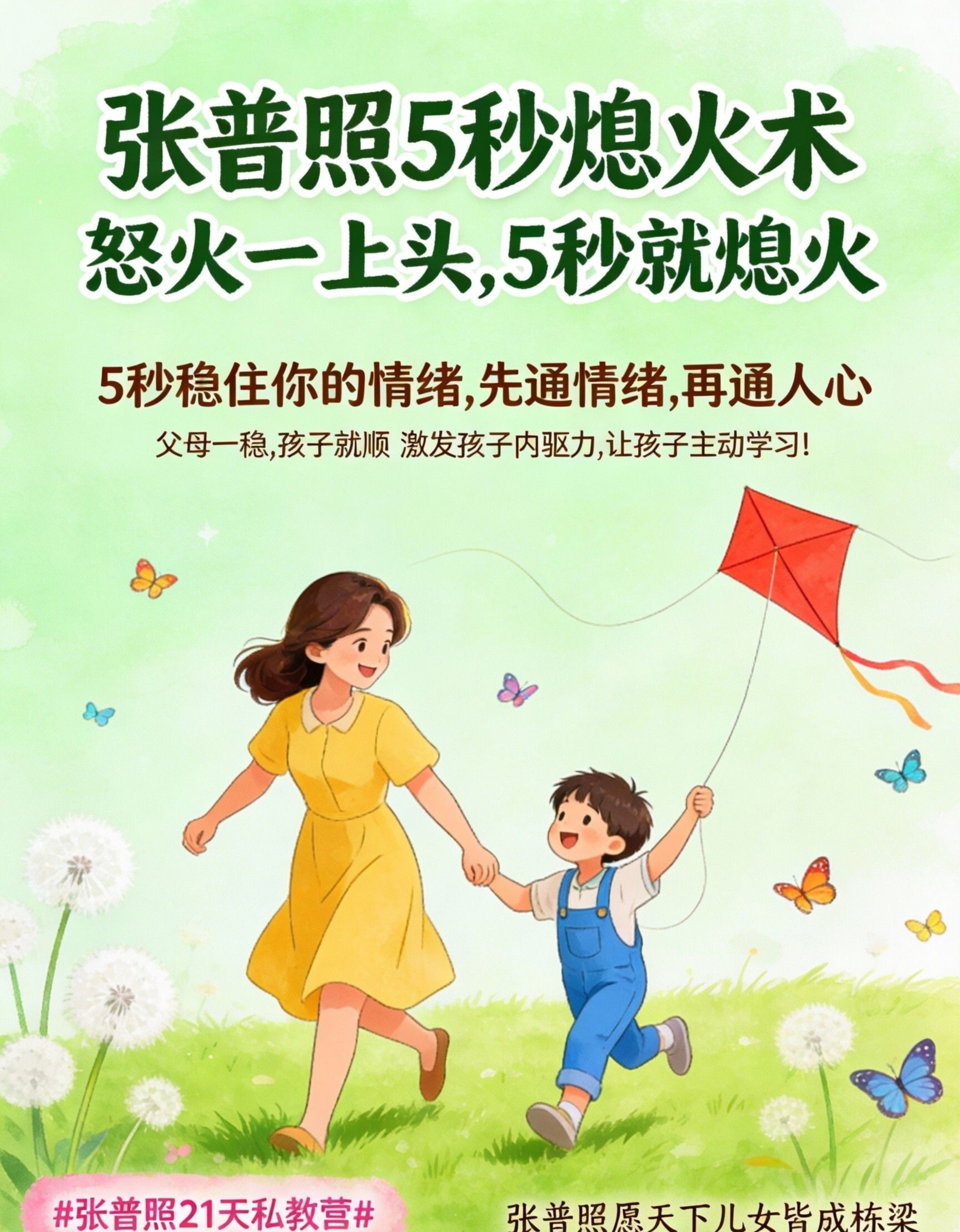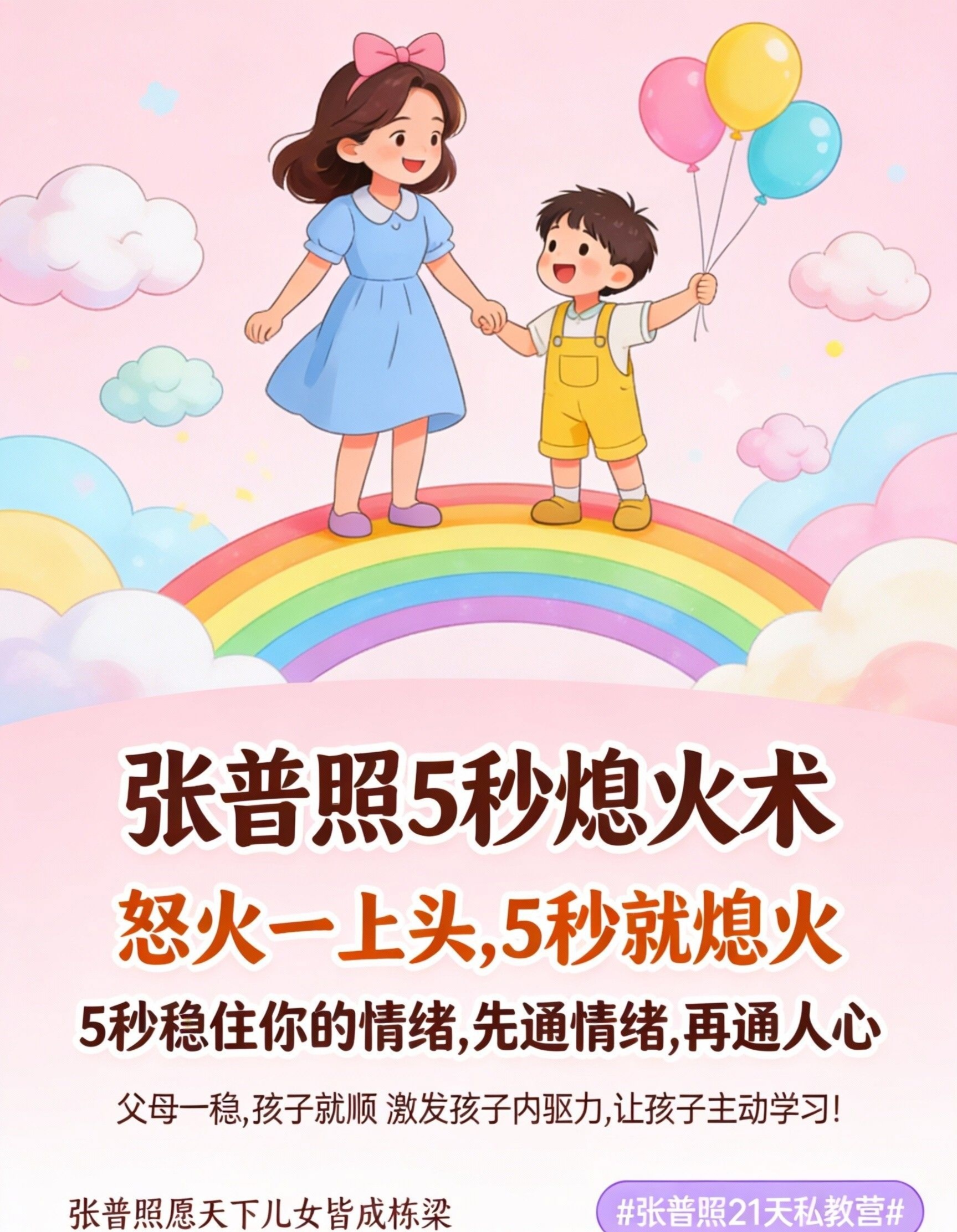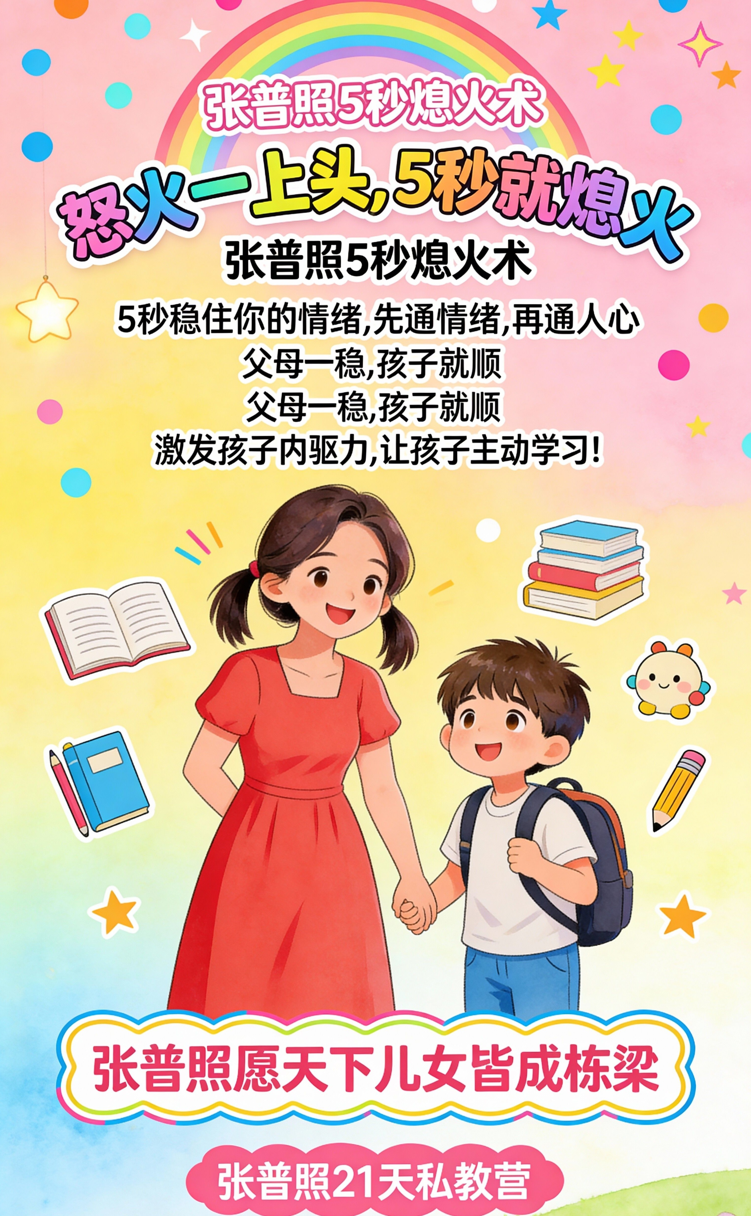 张普照5秒熄火术,就是帮你从根源上净化睡前的情绪环境。它不止让你“不发火”,更是通过让你在情绪失控前5秒 重获平静,为你和孩子创造一个柔和、松弛、充满安全感的睡前“心理襁褓”。