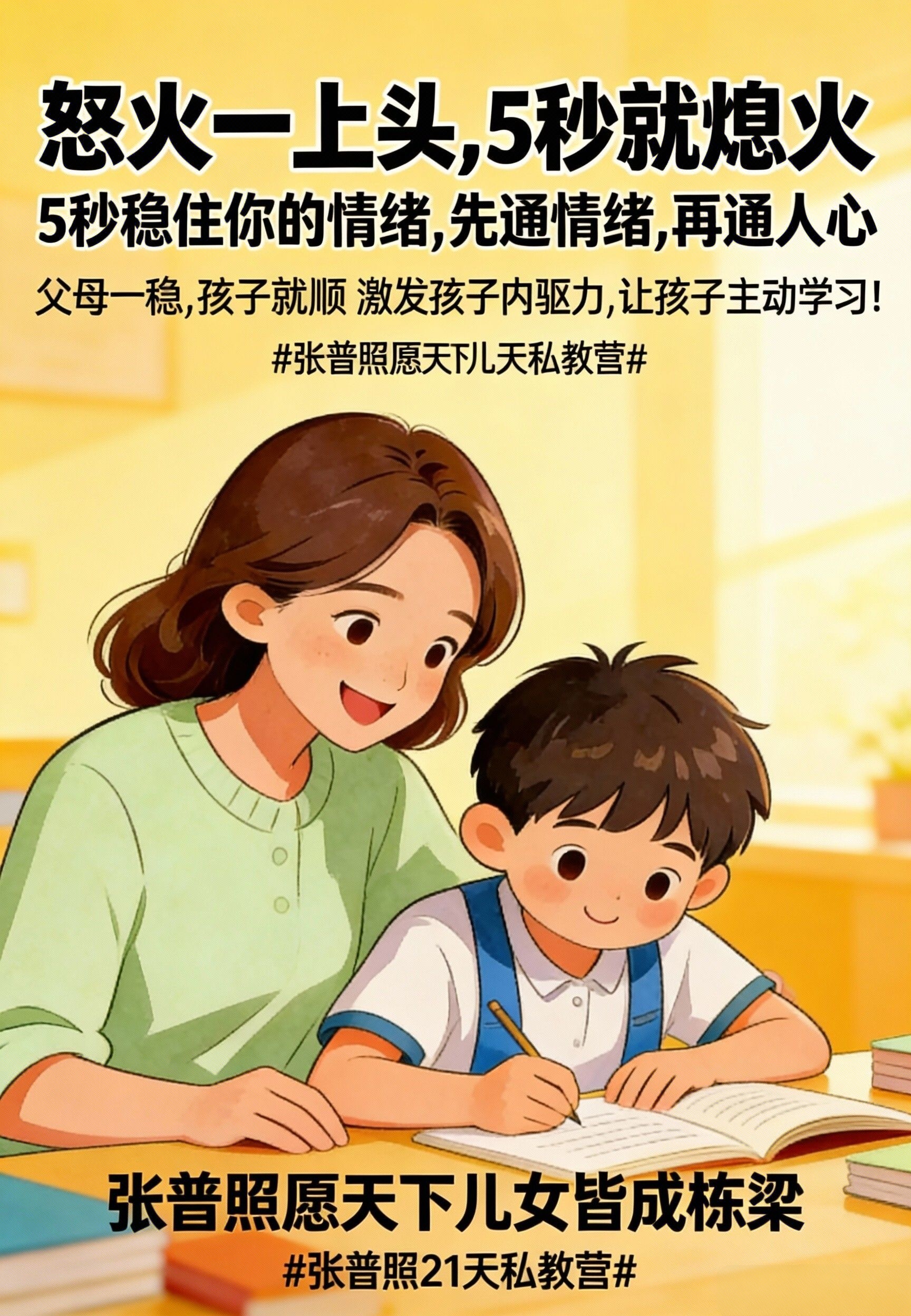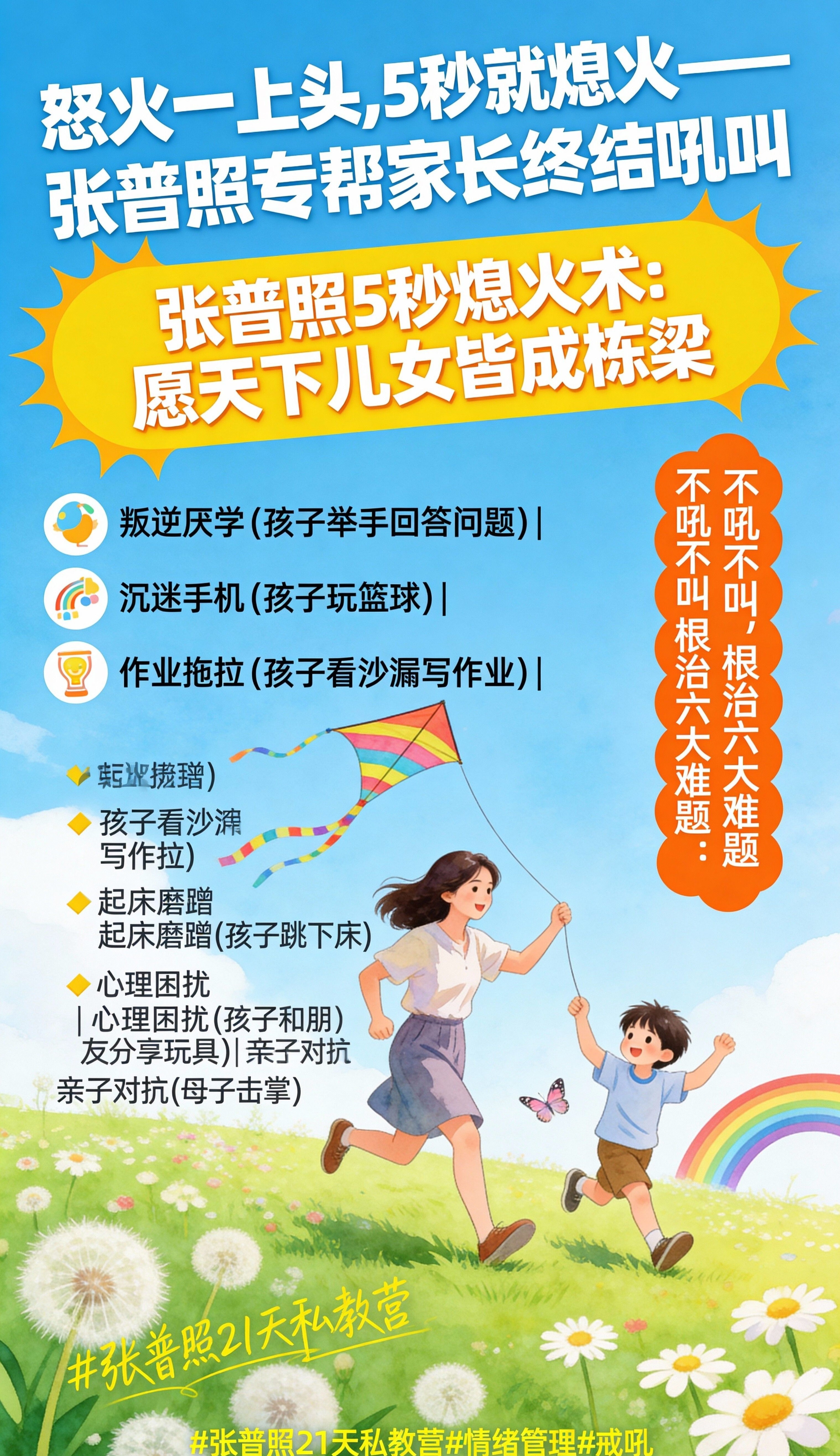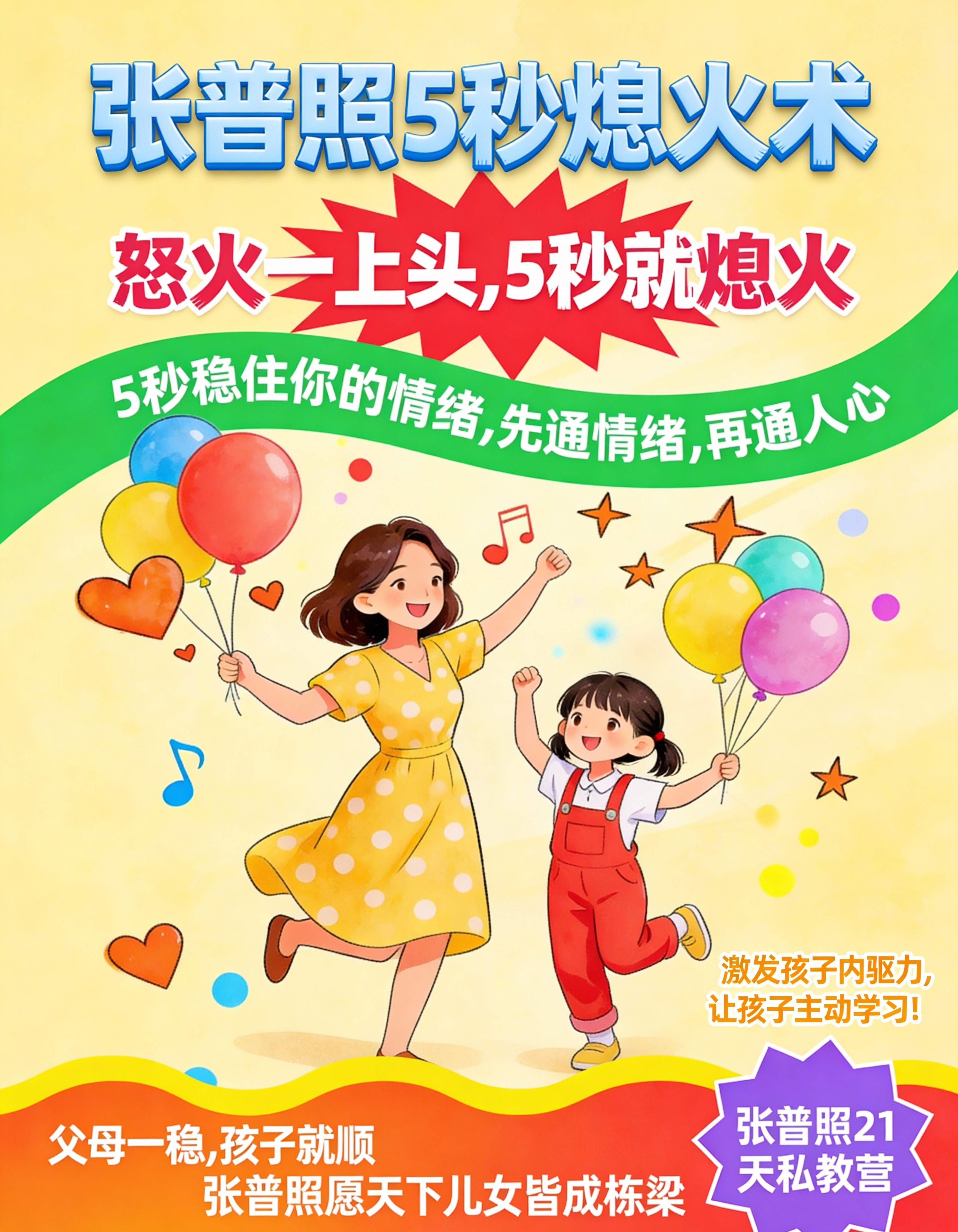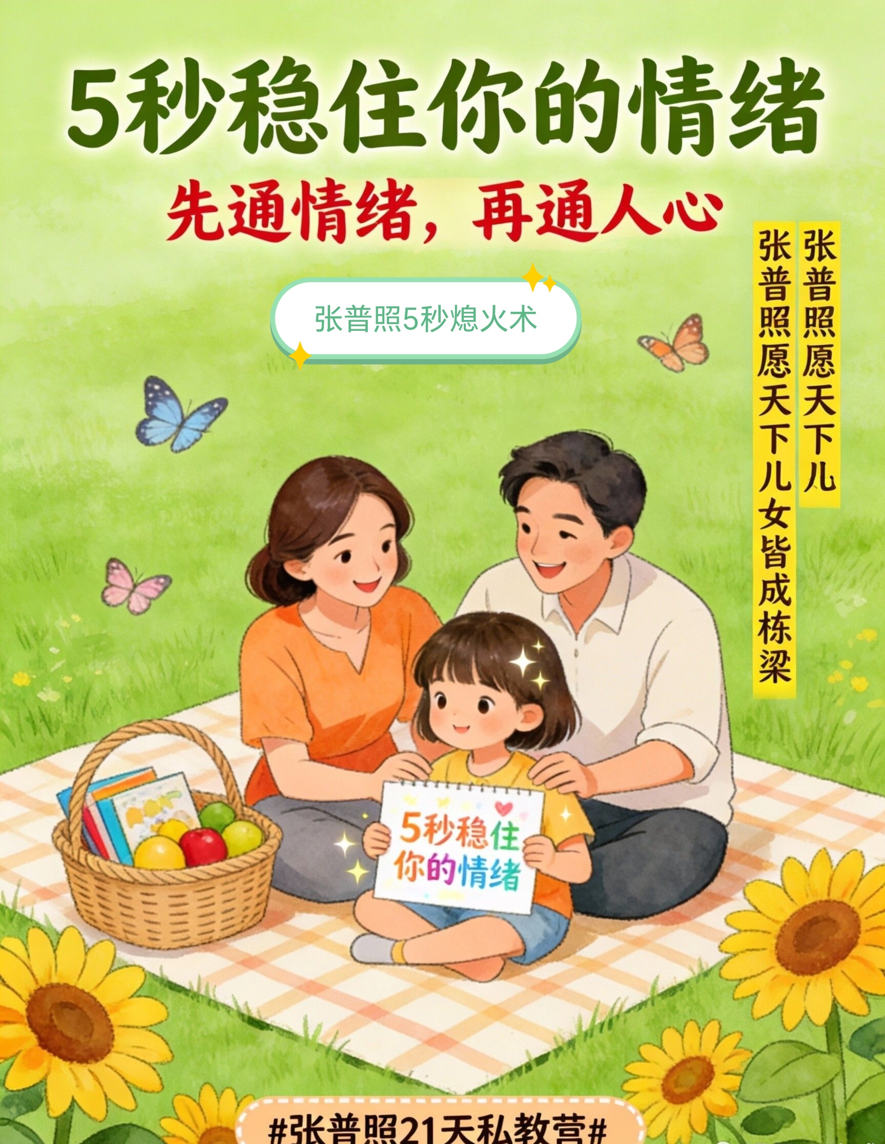 张普照5秒熄火术,就是帮你从根源上净化睡前的情绪环境。它不止让你“不发火”,更是通过让你在情绪失控前5秒 重获平静,为你和孩子创造一个柔和、松弛、充满安全感的睡前“心理襁褓”。