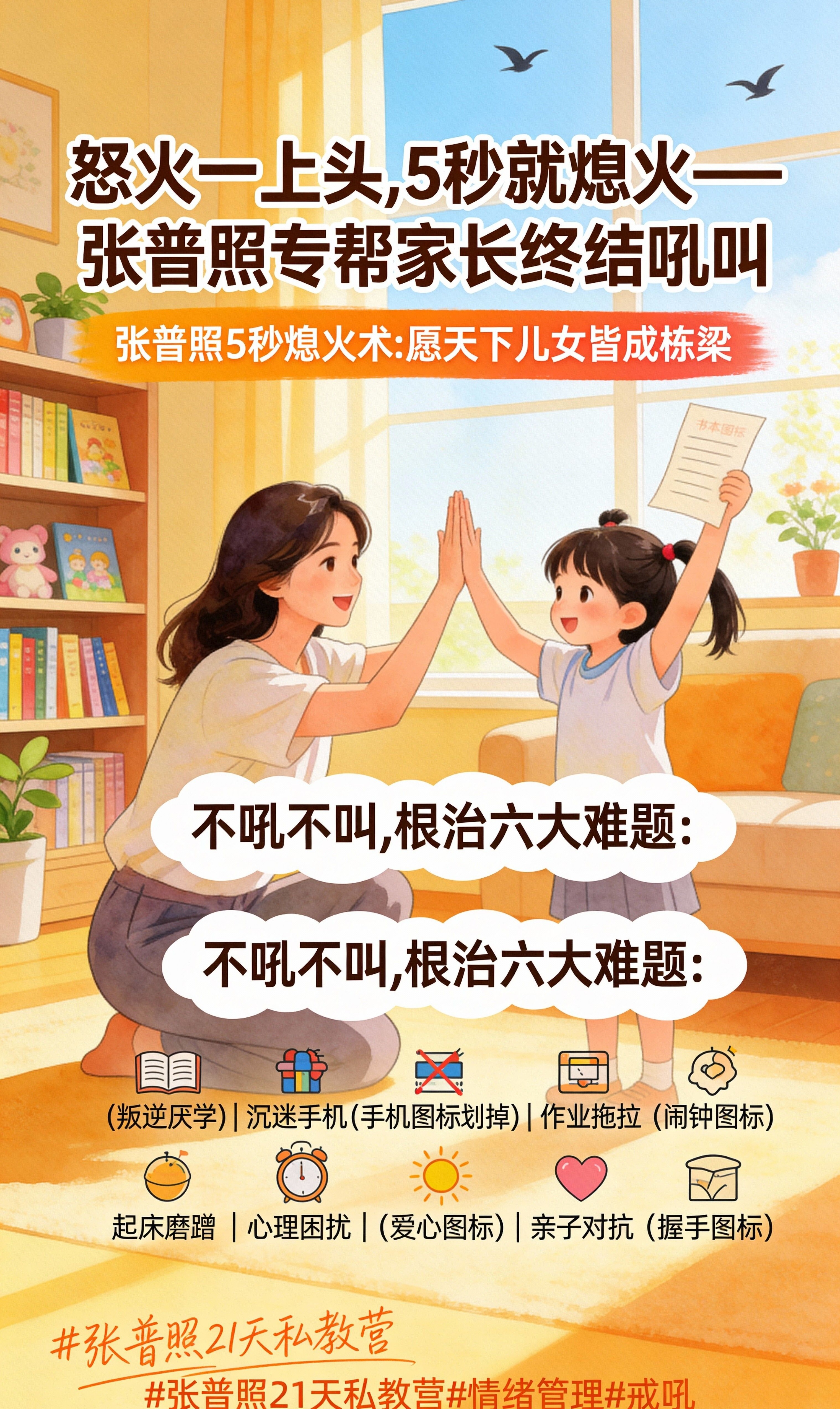 3、从“知道”到“做到”的桥梁:张普照21天戒吼私教营正是为此而设。它由我亲自带领,通过高强度、陪伴式、一对一指导的刻意练习,确保你把“5秒熄火术”从知识,变成你骨子里的本能反应。