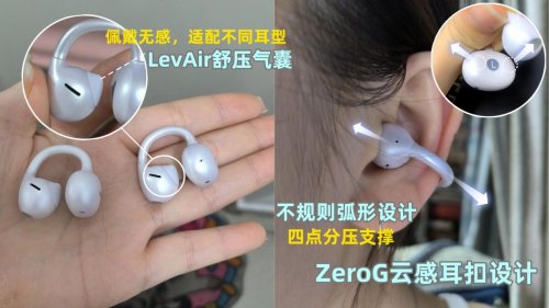 佩戴体验:采用全新的云感C形桥设计,亲肤液态硅胶搭配高性能记忆金属,柔软度比上一代提升25%,贴合耳朵时张力恰到好处,不会有夹耳感。单耳重量5.1g,不算很重,再加上依据上万份全球人耳数据优化的尺寸,贴合度很高,日常通勤、轻度运动佩戴都很稳固,还支持左右声道自适应,不用特意区分左右耳,很省心。防护等级达到IP57,出汗、小雨天气都能放心用。