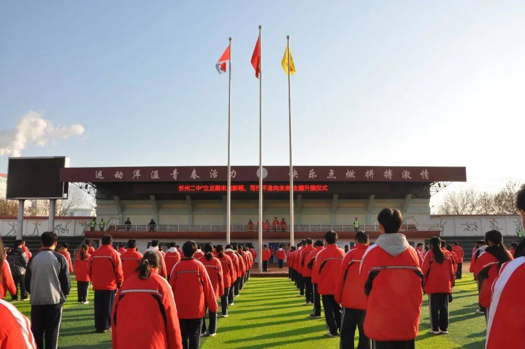 冬日暖阳照校园,红旗飘扬励初心。为引导全体学子总结过往学习成果,明确期末冲刺目标,以昂扬姿态奔赴新征程,近日,忻州二中在操场隆重举行“立足期末启新程,笃行不怠向未来”主题升旗仪式。全体师生齐聚五星红旗下,共同感受庄严氛围,凝聚奋进力量。