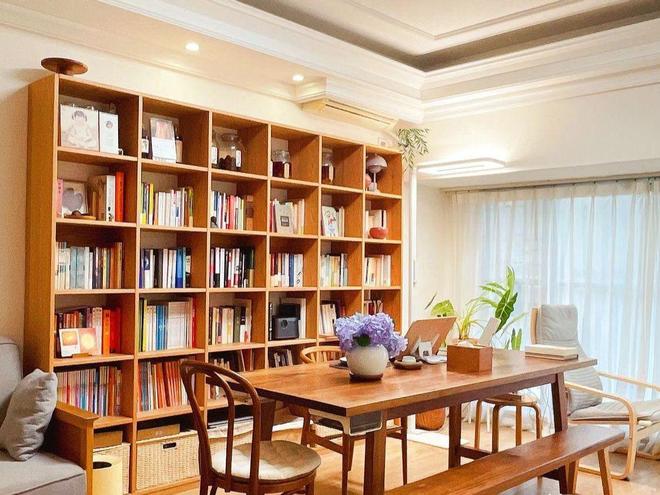 这种不花哨的墙面装修,不仅能够实现很强的收纳,还能让客厅始终保持整洁。而且能够营造出宁静的阅读环境,让家人和孩子远离电子设备。
