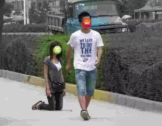 妹子,你到底犯啥错了,怎么还给老公下跪了啊!