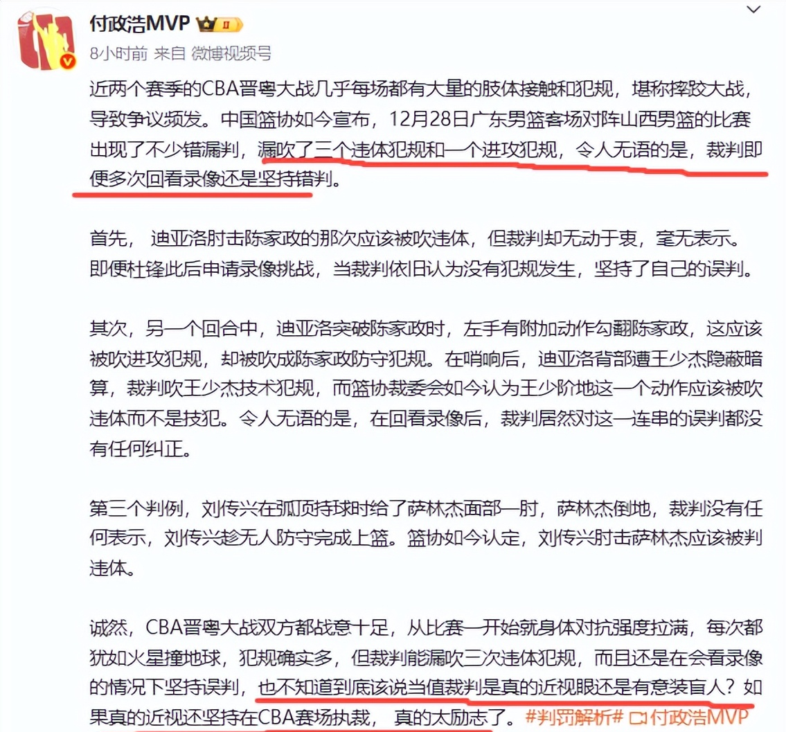 值得注意的是,这几次漏判,裁判几乎都看了录像回放,在这种情况还出现漏判错判,实在令人不解。对此,媒体人付政浩怒斥:当值裁判是真的近视眼还是有意装盲人?如果真的近视还坚持在CBA赛场执裁, 真的太励志了。